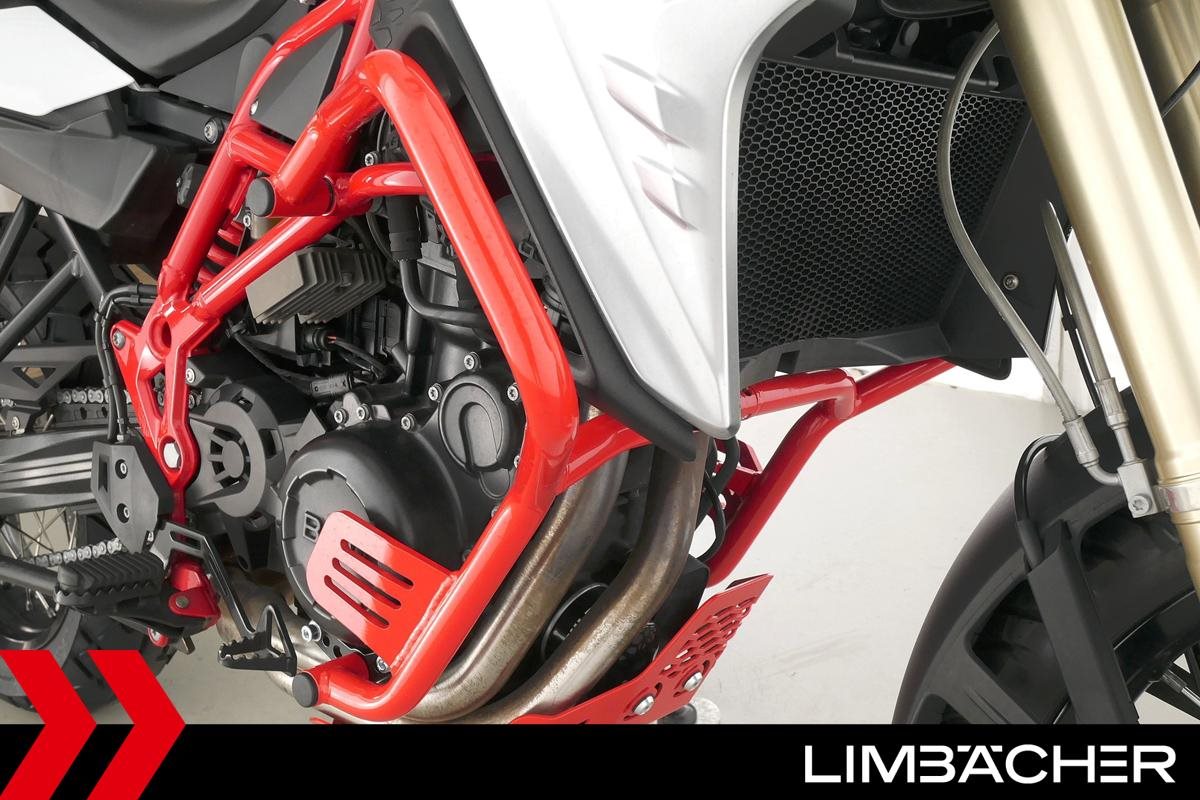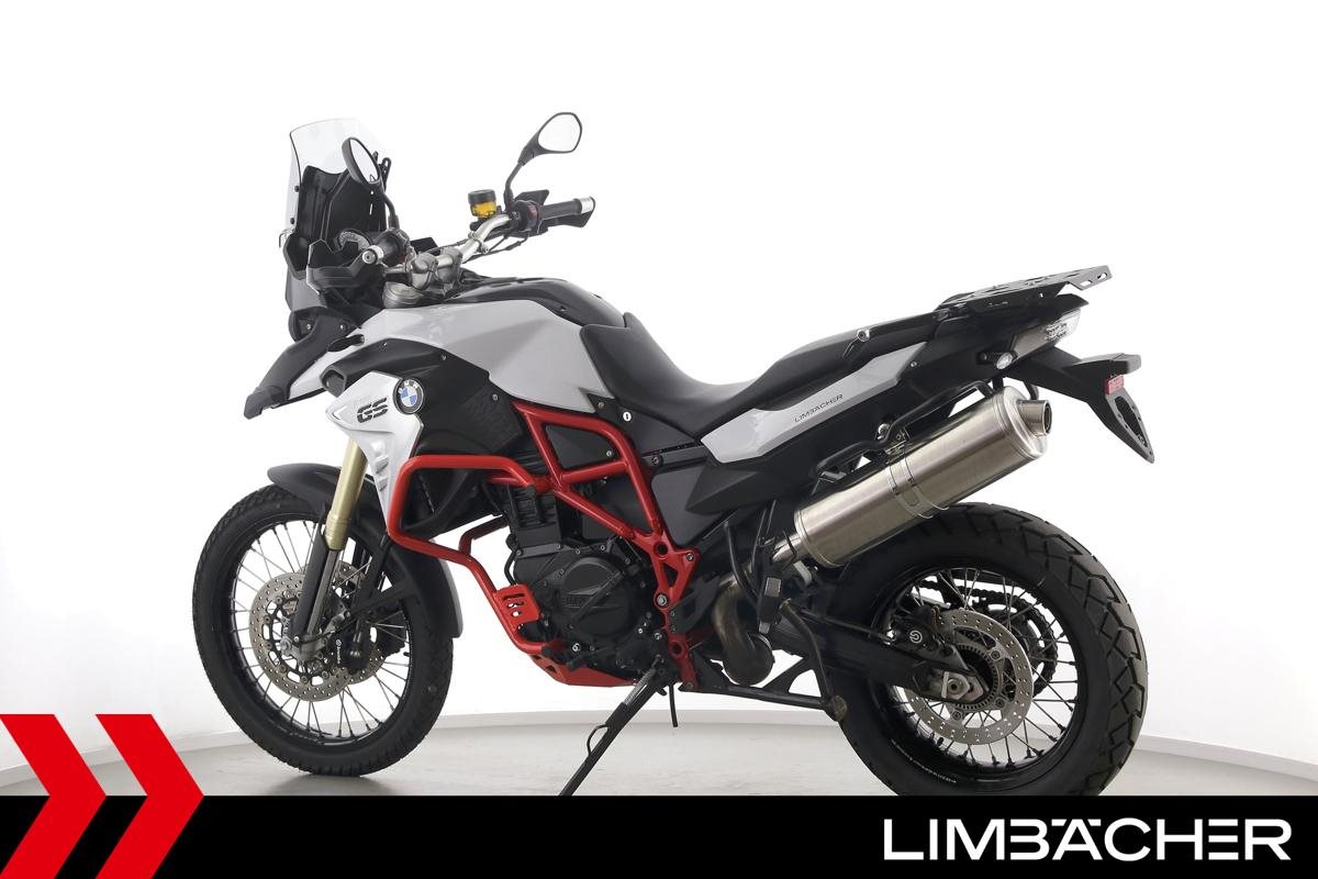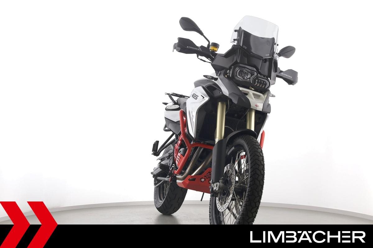 Eine BMW F 850 GS in gepflegtem Zustand u.a. mit Sturzbügel rot sowie Puig-Scheibe getönt.