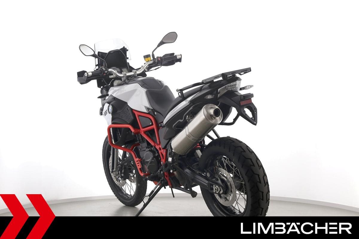 Eine BMW F 850 GS in gepflegtem Zustand u.a. mit Sturzbügel rot sowie Puig-Scheibe getönt.