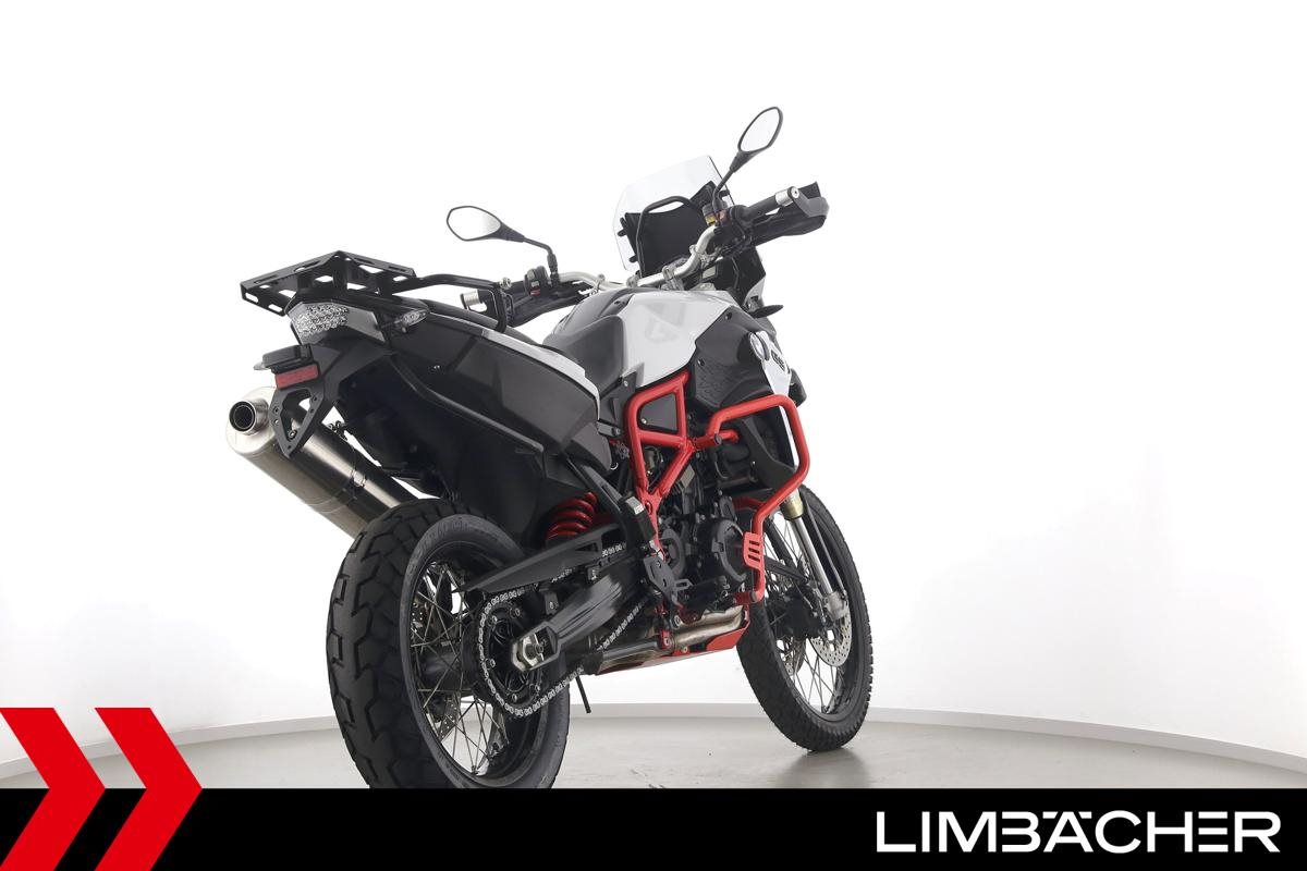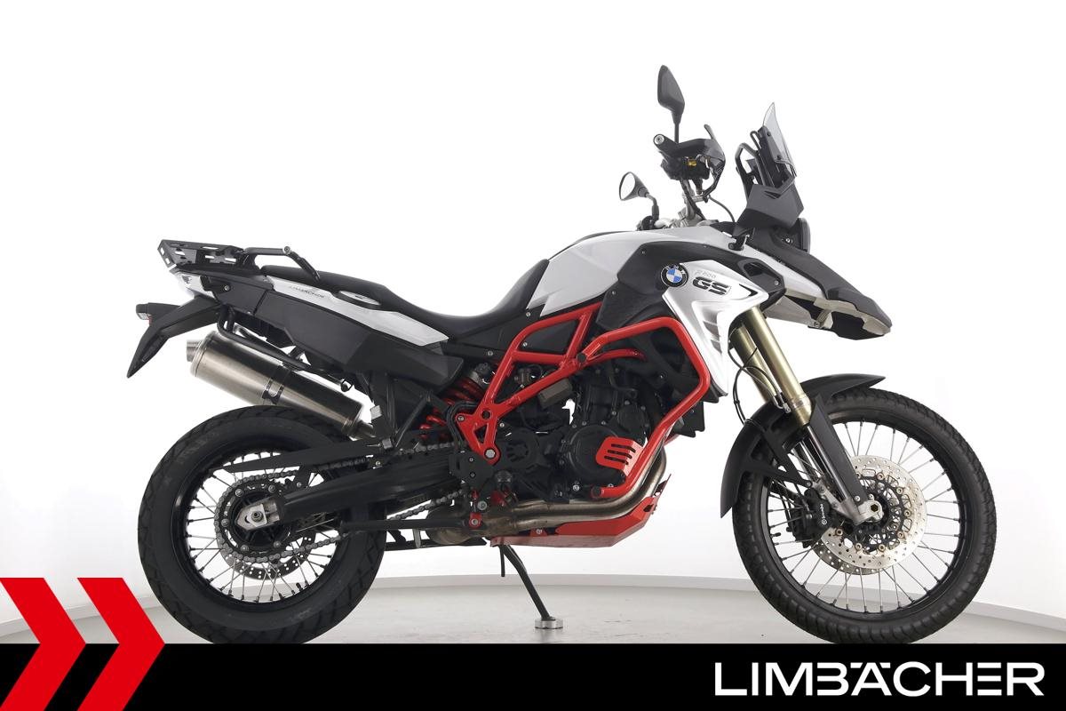 Eine BMW F 850 GS in gepflegtem Zustand u.a. mit Sturzbügel rot sowie Puig-Scheibe getönt.