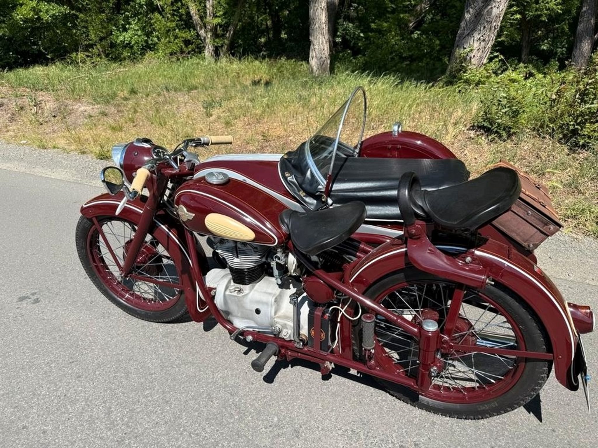 Verkaufe meine AWO 425 T mit originalem Stoye Seitenwagen aus Mai 1958.