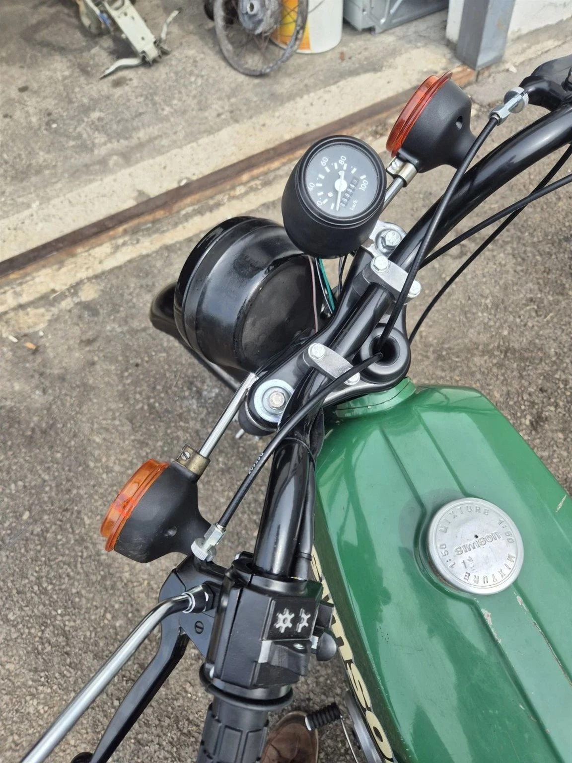 Das Moped war ursprünglich mal eine S50,wurde wie man sieht aber als S51 wieder aufgebaut. Die Elektrik funktioniert einwandfrei,Getriebe schaltet sauber und das Moped fährt einwandfrei.