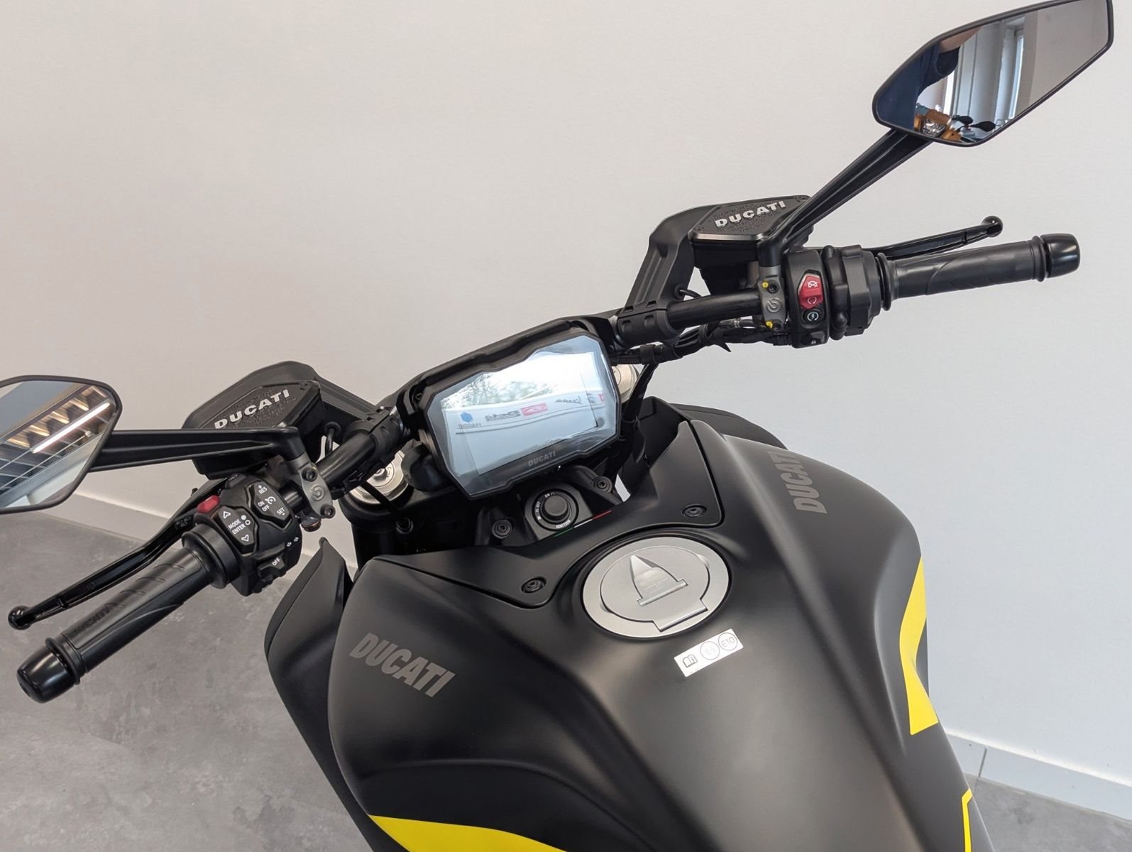 Riding Modes, Power Modes, Kurven-ABS, Ducati Traction Control, Ducati Wheelie Control, Daytime Running Light, Ducati Brake Light, Ducati Quick Shift, Ducati Power Launch, Geschwindigkeitsregelanlage, Hands-Free, 5-Zoll-TFT-Farbdisplay, Ducati Multimedia System, hintergrundbeleuchtete Lenkschalter, Voll-LED-Scheinwerfer mit DRL, automatische Blinkerrückstellung.
