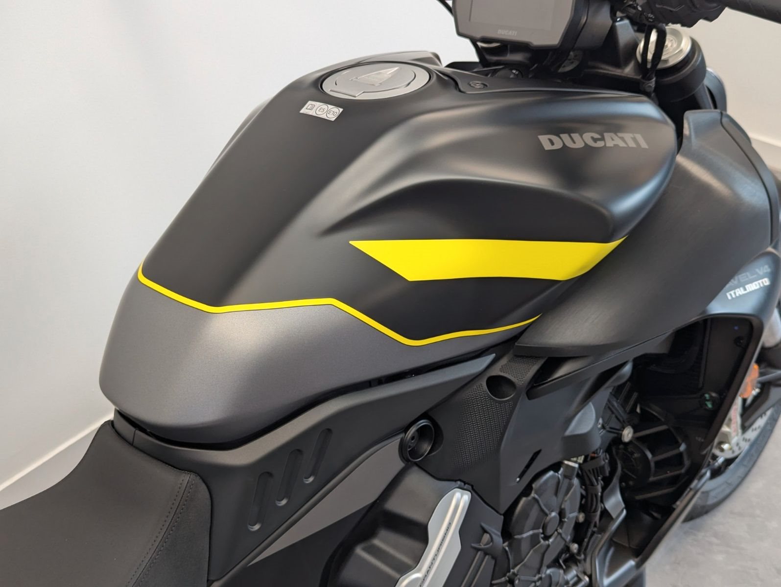 Riding Modes, Power Modes, Kurven-ABS, Ducati Traction Control, Ducati Wheelie Control, Daytime Running Light, Ducati Brake Light, Ducati Quick Shift, Ducati Power Launch, Geschwindigkeitsregelanlage, Hands-Free, 5-Zoll-TFT-Farbdisplay, Ducati Multimedia System, hintergrundbeleuchtete Lenkschalter, Voll-LED-Scheinwerfer mit DRL, automatische Blinkerrückstellung.