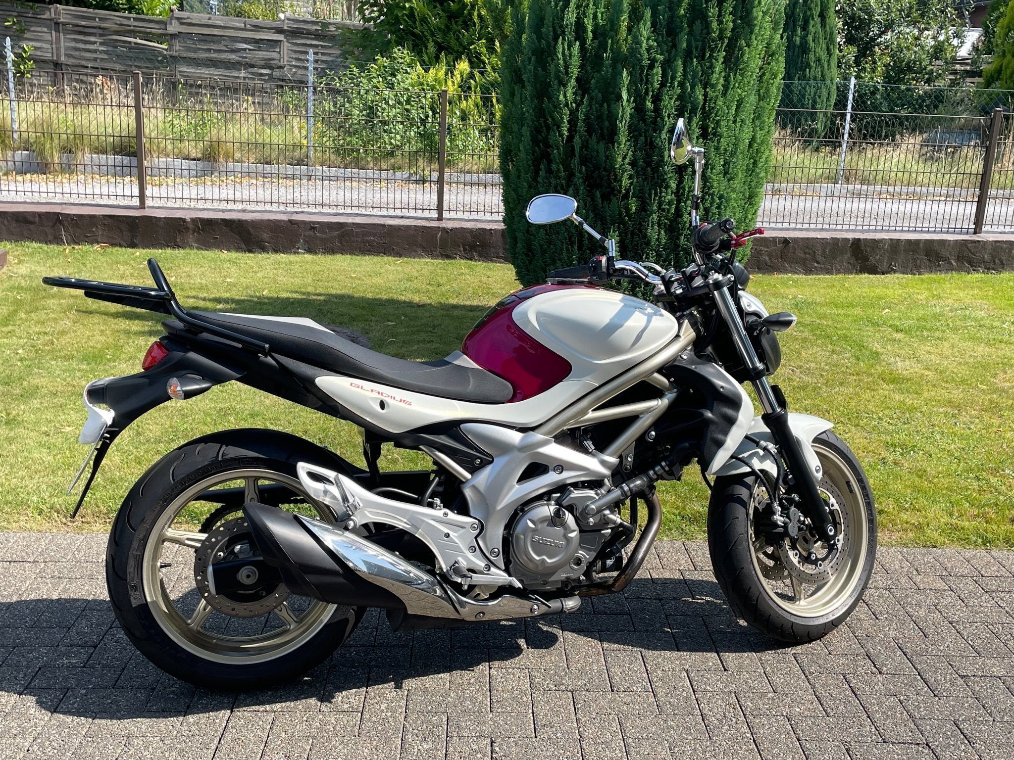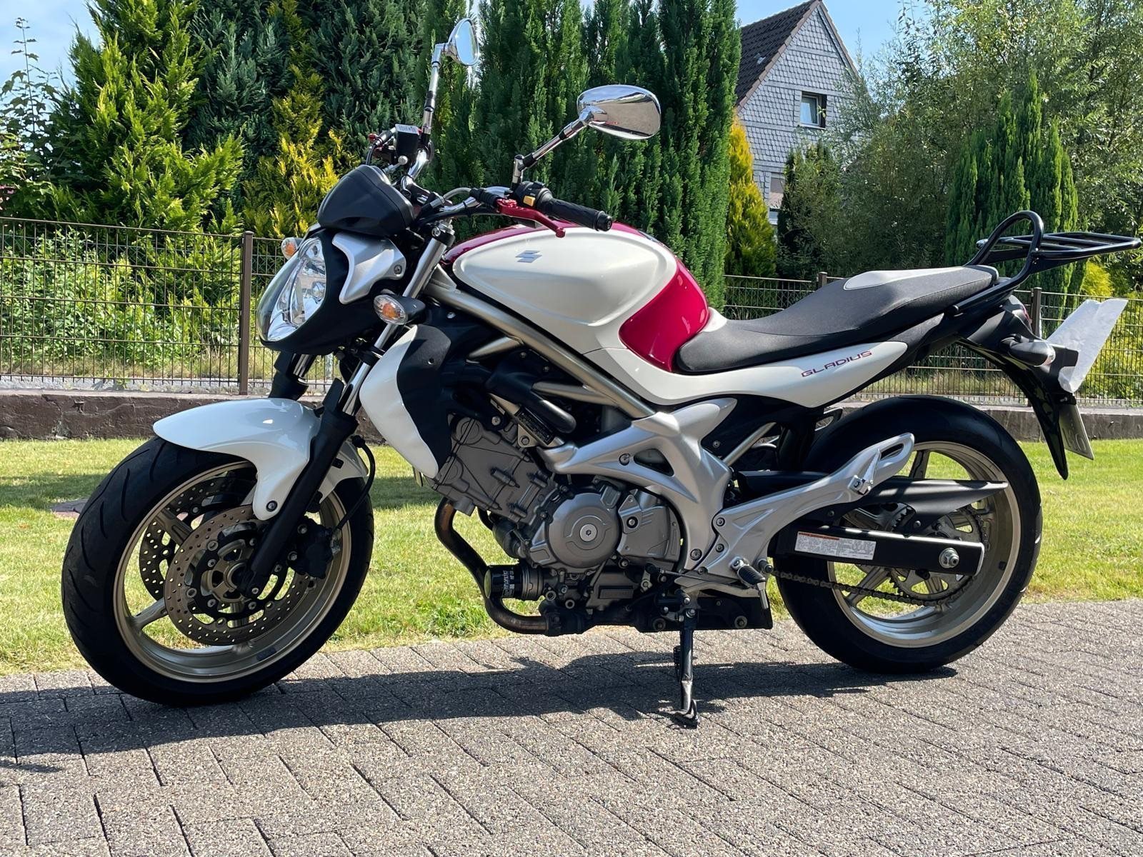 verkaufe hier meine sehr gepflegte Suzuki Gladius SFV 650A mit Zubehör (Gepäckträger, Tankrucksack, Packtaschen….) umständehalber in gute Hände abzugeben.