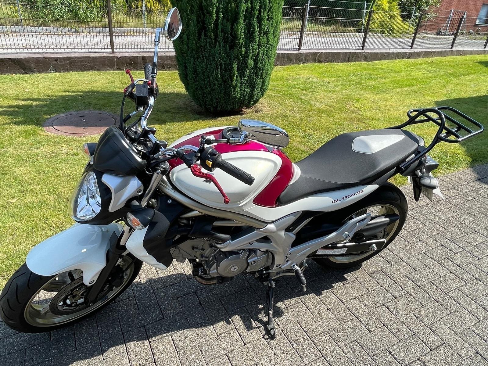 verkaufe hier meine sehr gepflegte Suzuki Gladius SFV 650A mit Zubehör (Gepäckträger, Tankrucksack, Packtaschen….) umständehalber in gute Hände abzugeben.