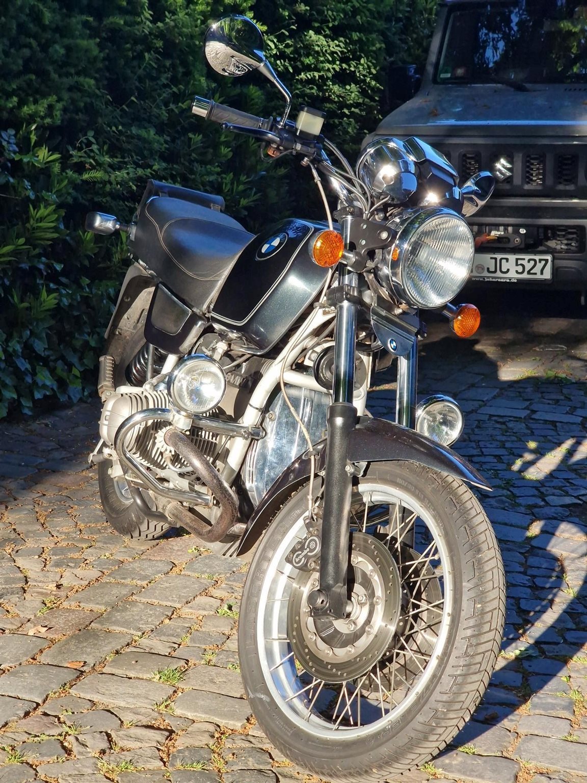 Die schöne BMW steht im Carport, hat einen Motorschutzbügel, Heizgriffe, eine Tourenscheibe (ist abgebaut), tiefere Fußrasten von "Wunderlich" und einen Schalthebel, Hinterradnabenabdeckung Alu pol., Motoröl-Thermometer-Peilstab, neuen Tankrucksack, fast neue "Metzler" Reeifen,, "Wilbers"-Stoßdämpfer, 3 Vorbesitzer, Standort Hamburger Westen.