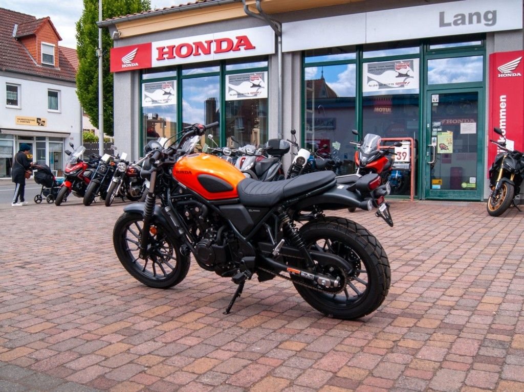 Wir bieten Ihnen die brandneue Honda CL500, Modelljahr 2024, in auffälligem Orange an. Dieses moderne Scrambler-Modell kombiniert klassisches Design mit moderner Technik und der bewährten Honda-Qualität. Perfekt für Stadtfahrten und ausgedehnte Touren.