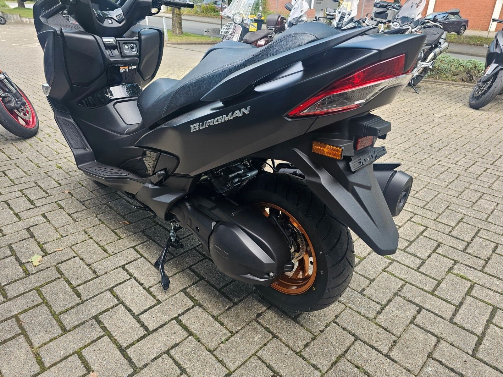 - Stilvoll unterwegs mit Leistung und Komfort Schlank, sportlich und kraftvoll: Der BURGMAN 400 verbindet markantes Design mit starkem Drehmoment und leichtem Handling. Ob im urbanen Alltag oder auf längeren Strecken - dieser Premium-Scooter bietet Fahrspaß, Sitzkomfort für zwei und moderne Ausstattung. Seine Dynamik trifft auf Alltagstauglichkeit - und sorgt dabei überall für einen stilvollen Auftritt.