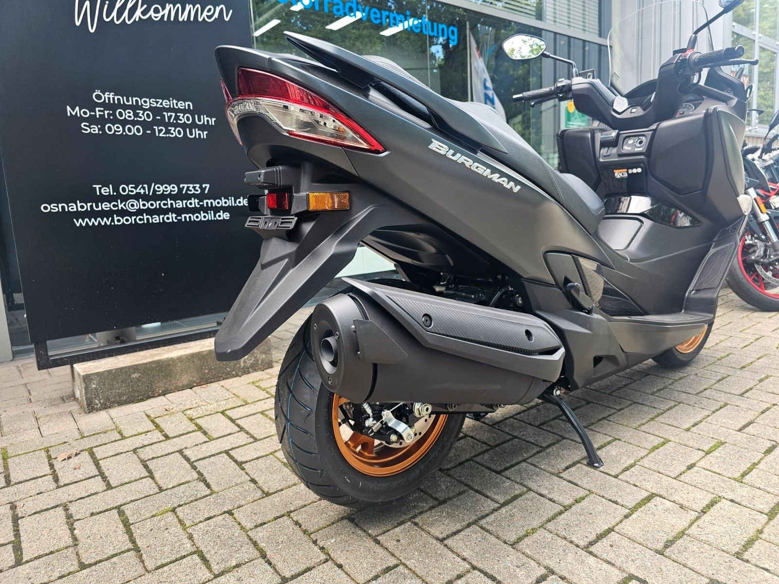 - Stilvoll unterwegs mit Leistung und Komfort Schlank, sportlich und kraftvoll: Der BURGMAN 400 verbindet markantes Design mit starkem Drehmoment und leichtem Handling. Ob im urbanen Alltag oder auf längeren Strecken - dieser Premium-Scooter bietet Fahrspaß, Sitzkomfort für zwei und moderne Ausstattung. Seine Dynamik trifft auf Alltagstauglichkeit - und sorgt dabei überall für einen stilvollen Auftritt.
