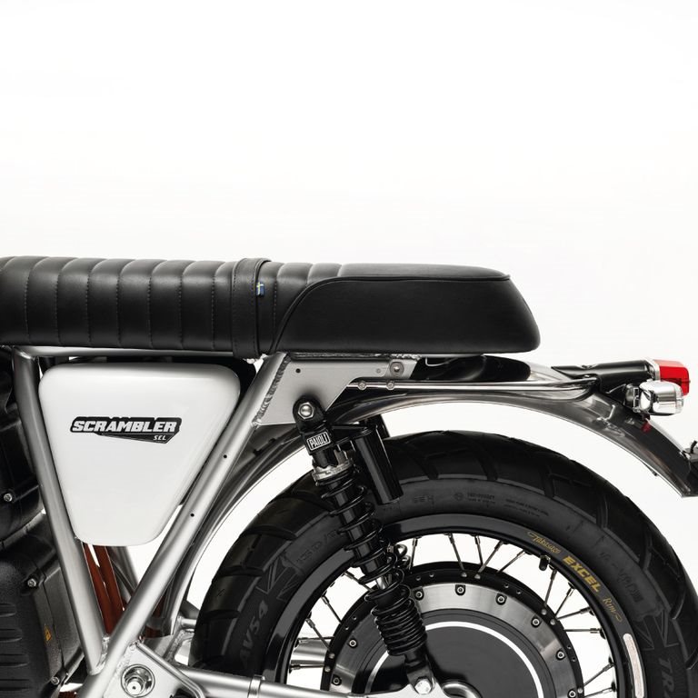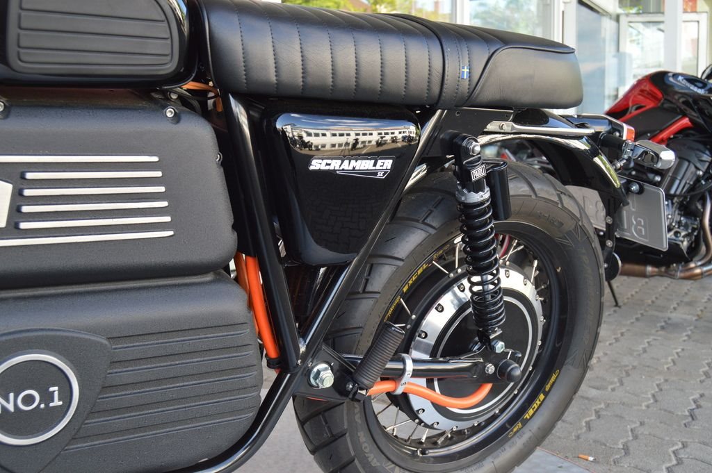 Fahrfertig wiegt die No.1 Scrambler SE Vollelektr. ca. 163.00 KG und hat eine Sitzhöhe von 81,0 cm.