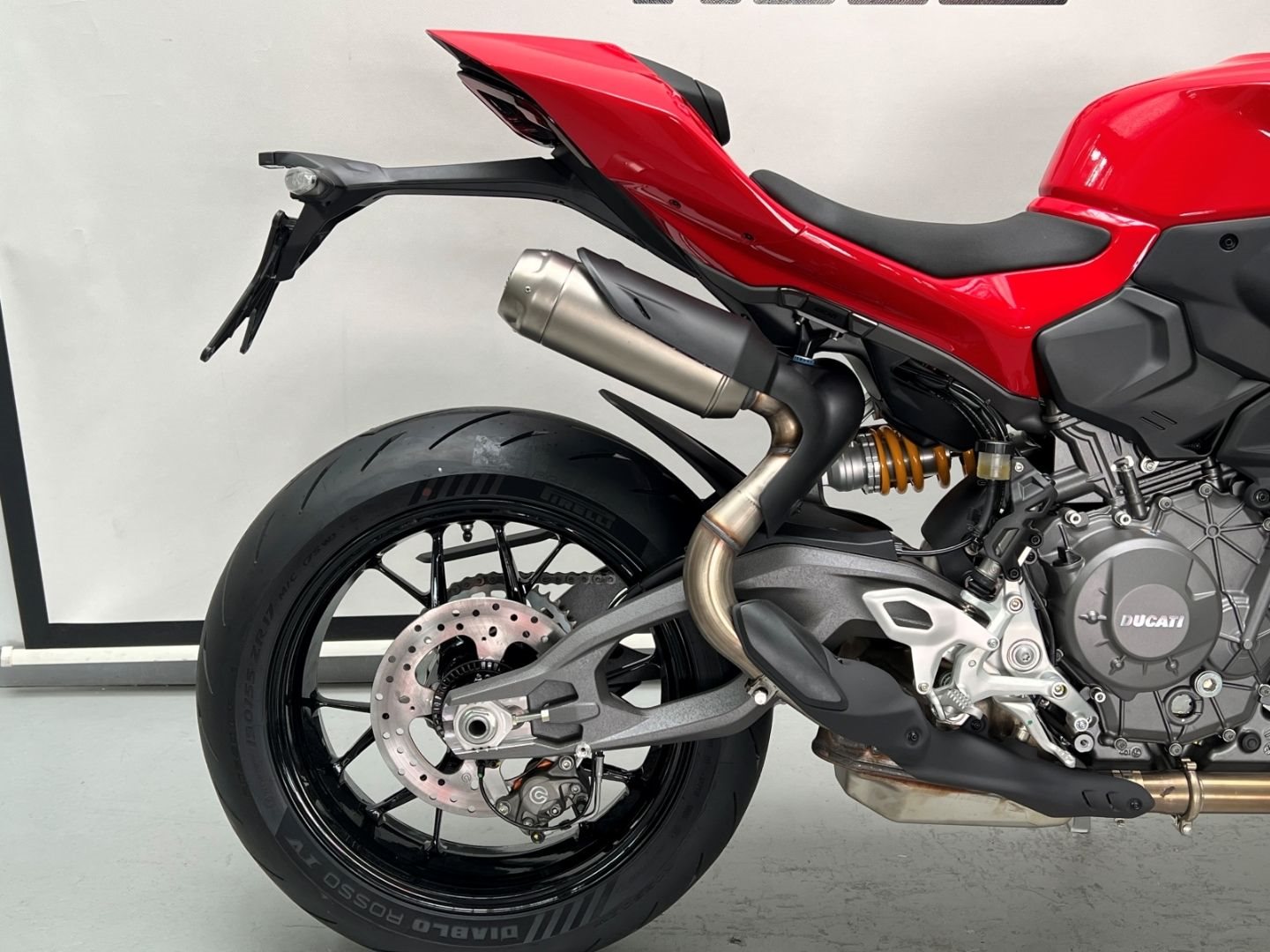 - Serienausstattung: Ducati Quick Shift (DQS) Up/Down 2.0, Voll-LED-Scheinwerfer mit Daytime Running Light (DRL), automatische Blinkerrückstellung, Lithium-Ionen-Batterie, Ducati Power Launch (DPL), Pit Limiter, Coming-Home-Funktion, Lenkungsdämpfer von Sachs, Einsitzer-Konfiguration