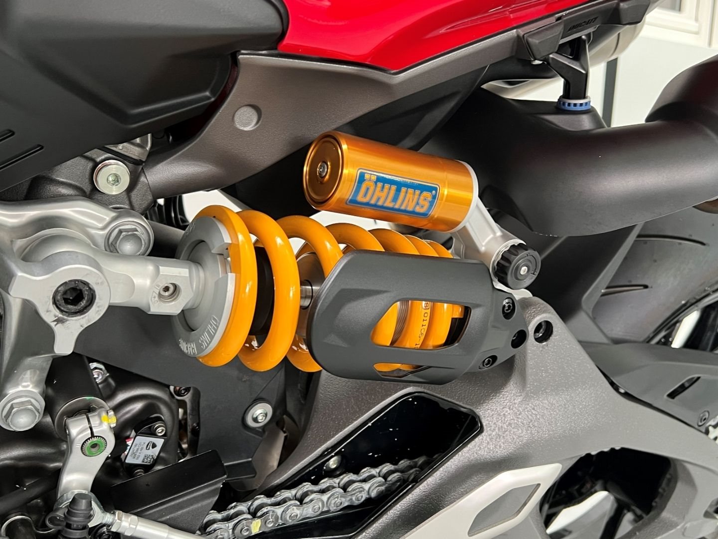 - Serienausstattung: Ducati Quick Shift (DQS) Up/Down 2.0, Voll-LED-Scheinwerfer mit Daytime Running Light (DRL), automatische Blinkerrückstellung, Lithium-Ionen-Batterie, Ducati Power Launch (DPL), Pit Limiter, Coming-Home-Funktion, Lenkungsdämpfer von Sachs, Einsitzer-Konfiguration