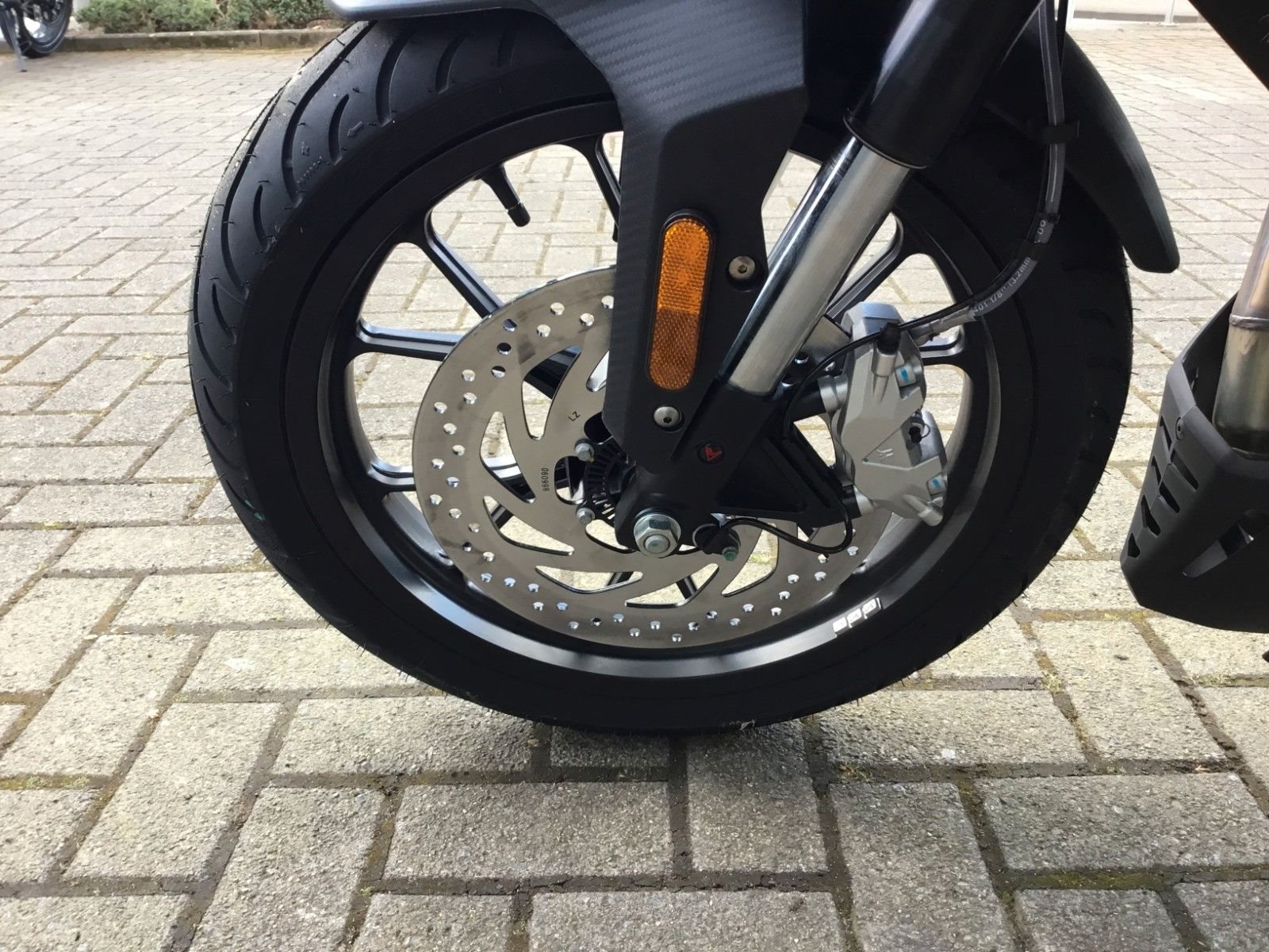 - Elektrisierendes Fahrgefühl Die Aprilia Tuono 125 sorgt für sofortigen Vortrieb - dank des flüssigkeitsgekühlten Euro-5+-Einzylindermotors mit Vierventiltechnik, der 11 kW bei 10.500 U/min und 11,4 Nm bei 8.500 U/min liefert. Die Motorleistung trifft auf ein präzises Bremssystem mit Zweikanal-ABS - entwickelt in Zusammenarbeit mit Bosch - sowie eine (abschaltbare) Traktionskontrolle, das für maximale Sicherheit und Stabilität sorgt. Für noch schnellere Gangwechsel ist die Tuono 125 bereits für den optionalen elektronischen Quickshifter vorbereitet.