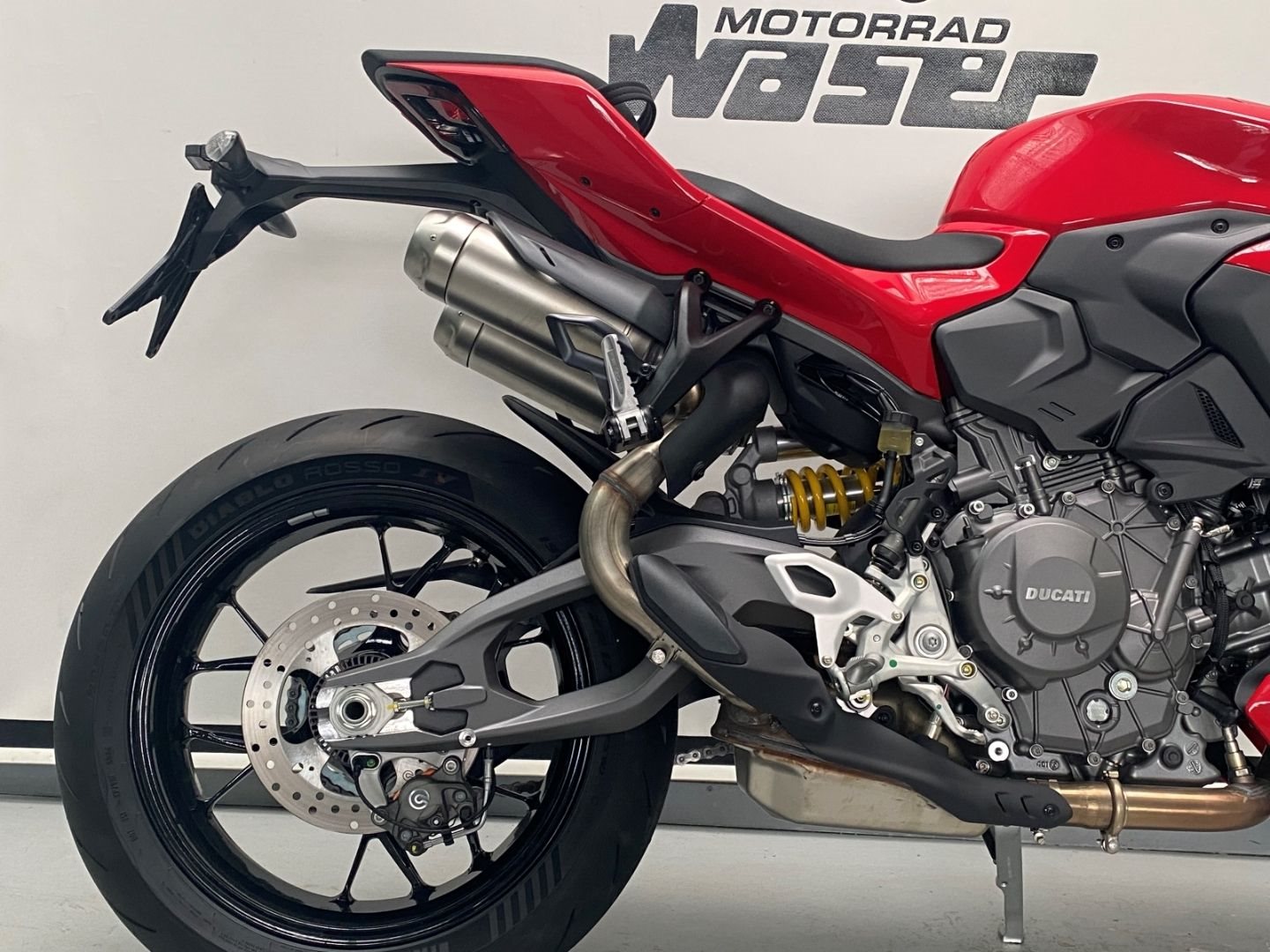 * Sicherheitsausstattung: Riding Modes, Power Modes, Kurven-ABS von Bosch, Ducati Traction Control (DTC), Ducati Wheelie Control (DWC), Engine Brake Control (EBC), automatische Reifenkalibrierung, Ducati Brake Light (DBL)