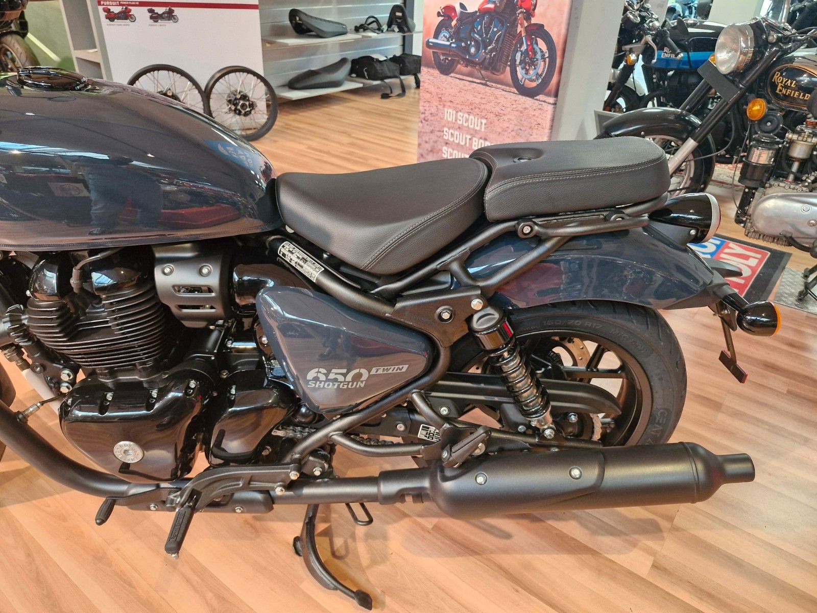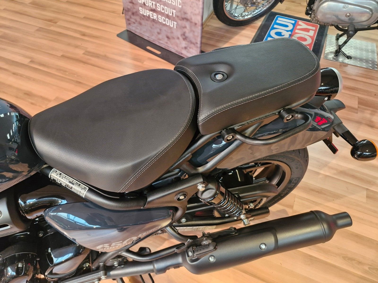 Die Shotgun 650 lässt sich nicht in eine bestimmte Kategorie zwingen. Ihre modulare Bauweise vereint drei ganz unterschiedliche Motorräder in sich - Einsitzer, Zweisitzer und Tourer mit ausreichend Platz für Gepäck. Jede der vier verfügbaren Lackierungen schöpft aus der Custom-Kultur und verwandelt die Maschine in eine Leinwand, auf der man sich ausleben kann.