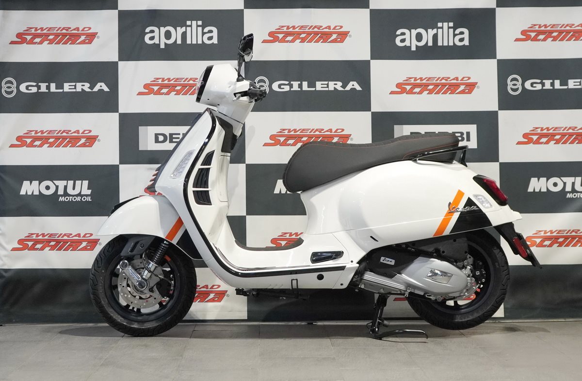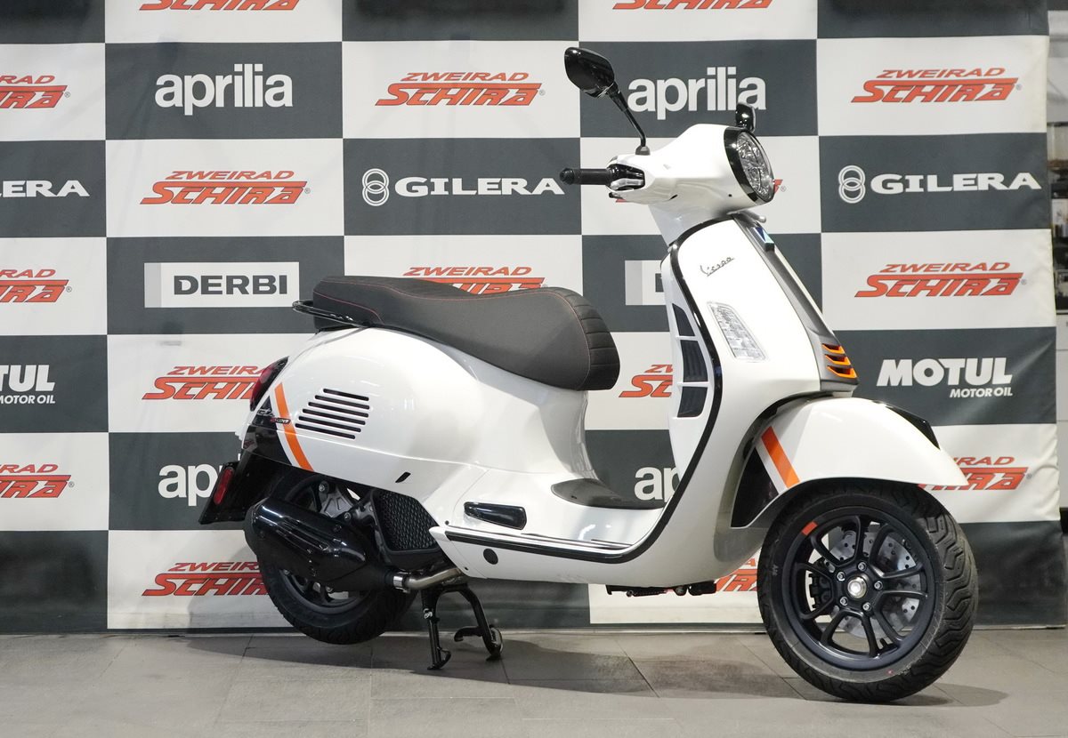 Die Vespa Gts SuperSport überzeugt durch ihre glänzenden und matten Farben, die durch Details im Carbon-Look und glänzend schwarze Zierleisten ergänzt werden. Die Sitzbank mit hochwertigen Materialien und Kontrastnähten unterstreicht ihren starken Charakter. Mit der Vespa Gts SuperSport wird jeder Tag zu einem aufregenden Abenteuer.