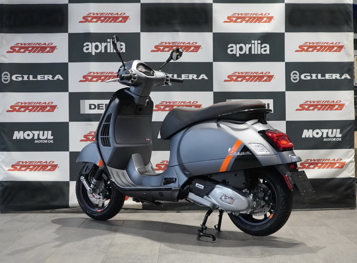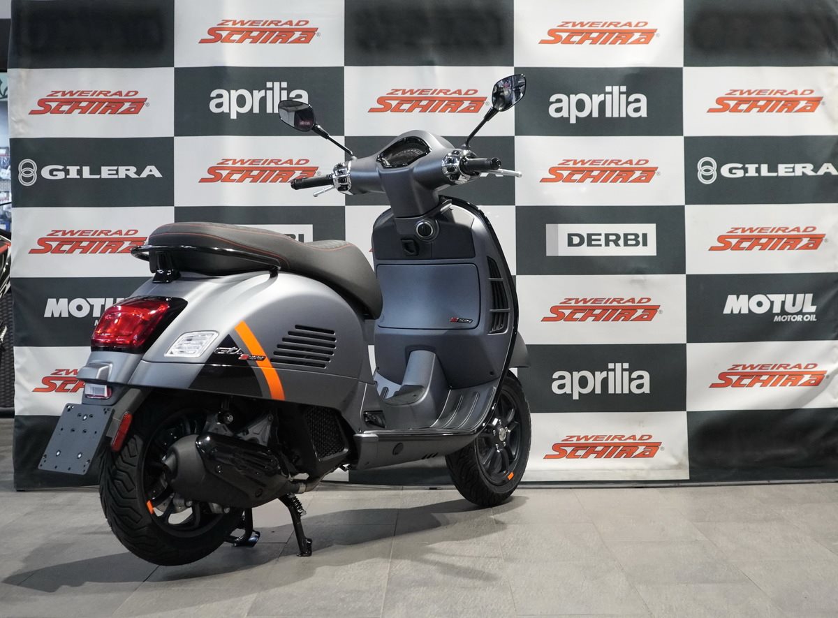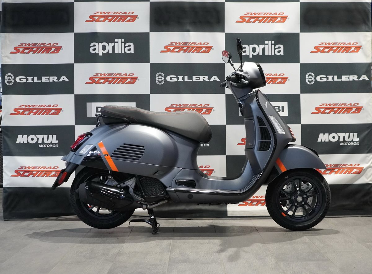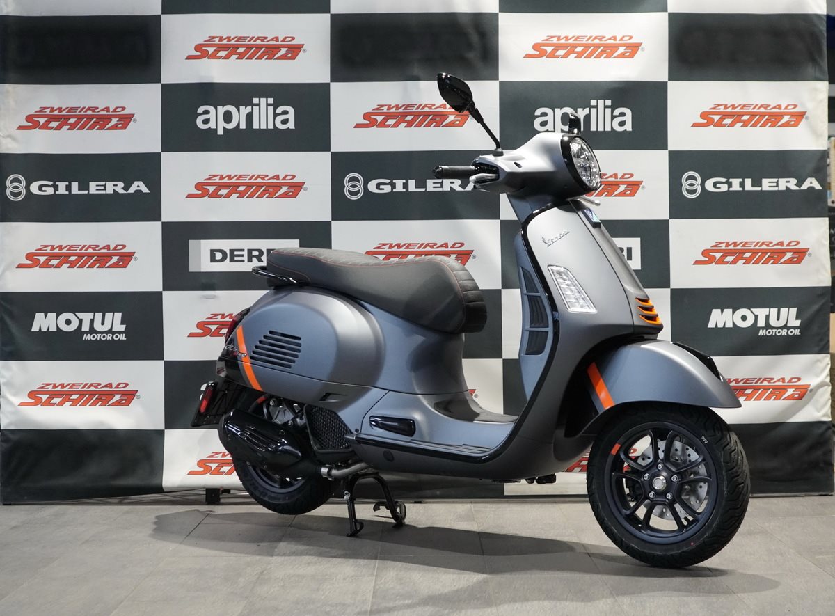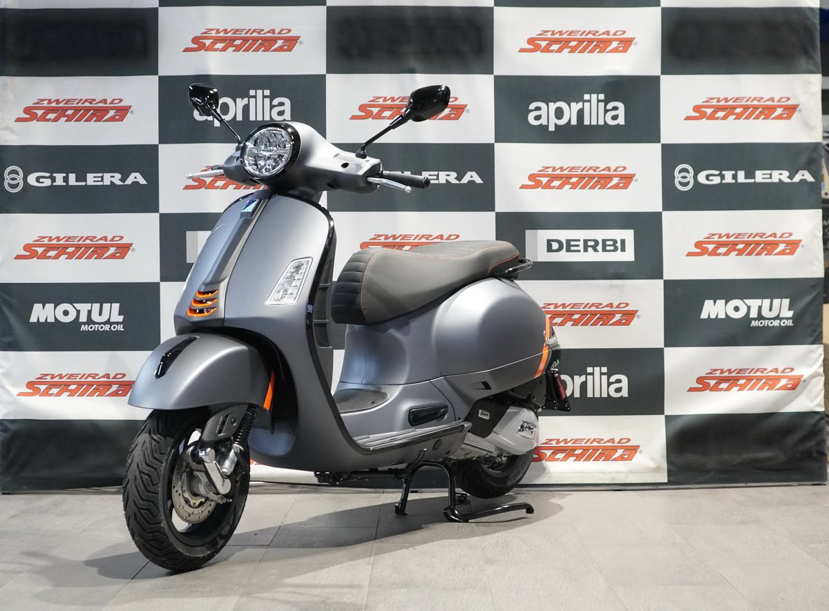 Die Vespa Gts SuperSport besticht durch ihre glänzenden und matten Farben, die durch Details im Carbon-Look und glänzend schwarze Zierleisten ergänzt werden. Die Sitzbank mit hochwertigen Materialien und Kontrastnähten unterstreicht ihren starken Charakter. Mit der Vespa Gts SuperSport wird jeder Tag zu einem aufregenden Abenteuer.