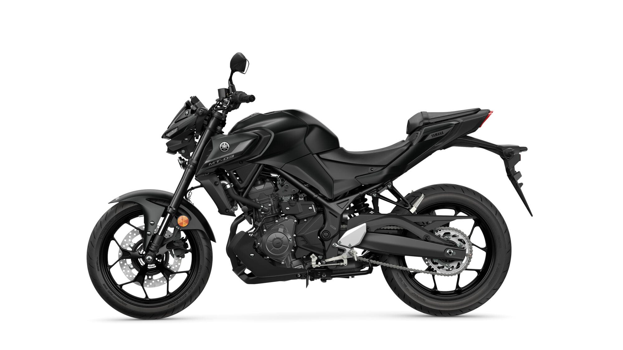 Mit ihrem nackten Body Work, dem agilen Handling und der aufregenden, drehmomentstarken Leistung bieten die Yamaha Naked Modelle ein aggressives Aussehen und ein aufregendes Fahrerlebnis. Die MT-03 kombiniert mit ihrem kraftvollen Design und den leistungsorientierten Komponenten den Big Bike Status mit leichtgewichtiger Vielseitigkeit. Zwei schräg gestellte Positionslampen über dem LED Scheinwerfer geben der MT-03 ein unverwechselbares Gesicht und machen sie zu einem der coolsten Bikes ihrer Kategorie. Mit ihrem nach vorne orientierten Design und den Lufteinlässen in Fighter-Jet Optik ist die MT-03 bereit, die Stadt zu erobern. Eine breite Tankabdeckung und die optimale Ergonomie ermöglichen eine perfekte, komfortable Sitzposition und schaffen eine intensive Verbindung zwischen Mensch und Maschine. Die 37 mm Upside-Down Gabel sorgt für herausragende Handling-Eigenschaften und ein starkes Erscheinungsbild.