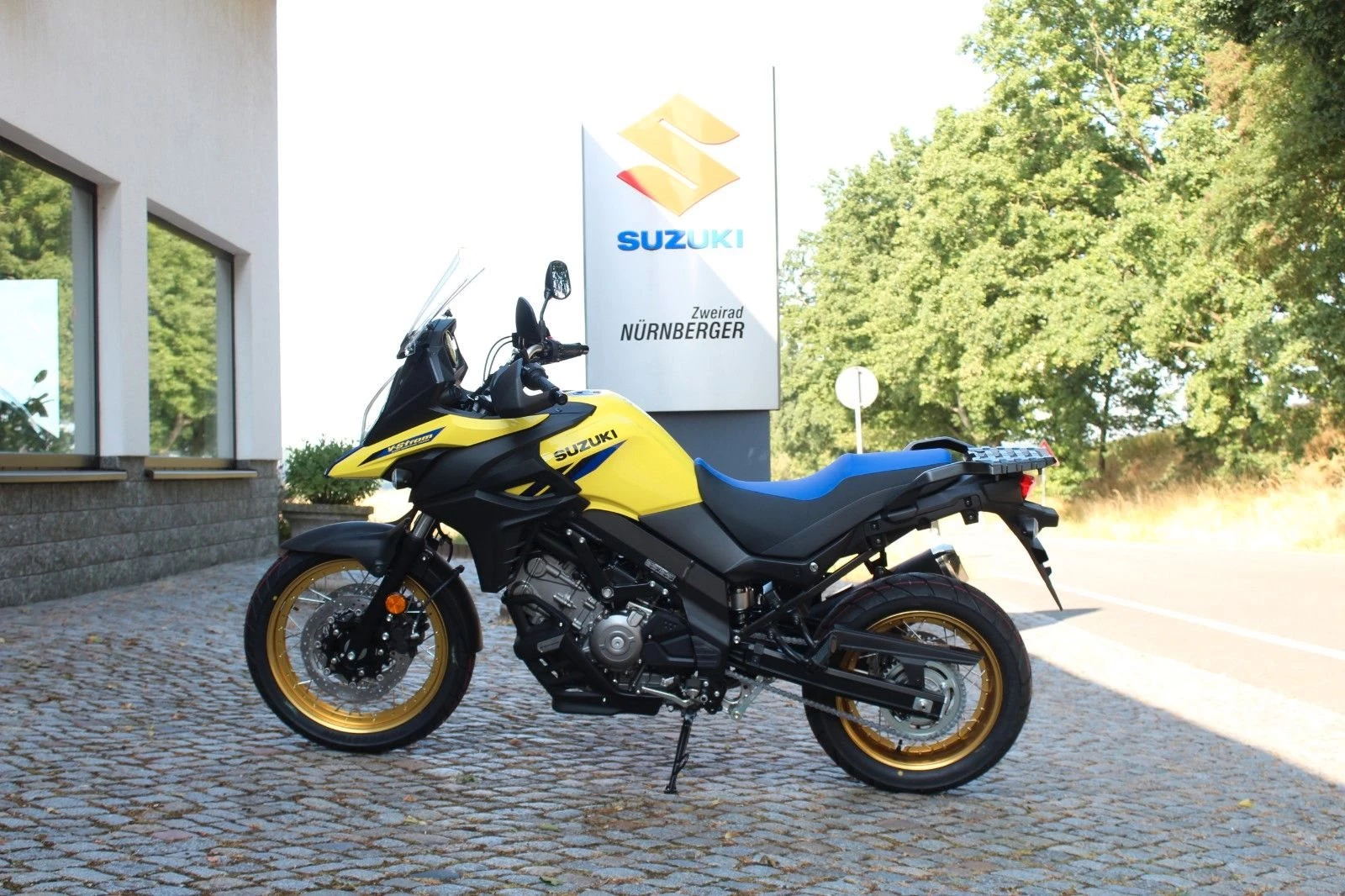 - neue Suzuki DL 650 XT V-Strom mit Speichenrädern, Handschützern und Motorbugspoiler