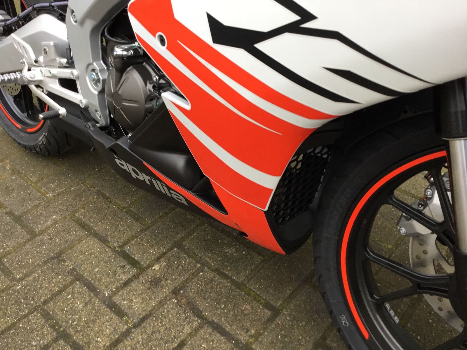 - 125 cm3 Euro 5+ Motor.Der Motor der Aprilia RS 125 ist ein Einzylinder mit Vierventil-Technik, Flüssigkeitskühlung und Euro 5+. Er wurde entwickelt, um in seiner Klasse die maximale Leistung zu liefern. Die Spitzenleistung beträgt 15 PS, kombiniert mit einem beeindruckenden Drehmoment - eine brillante Performance, die Adrenalin und volle Kontrolle in jeder Kurve garantiert.