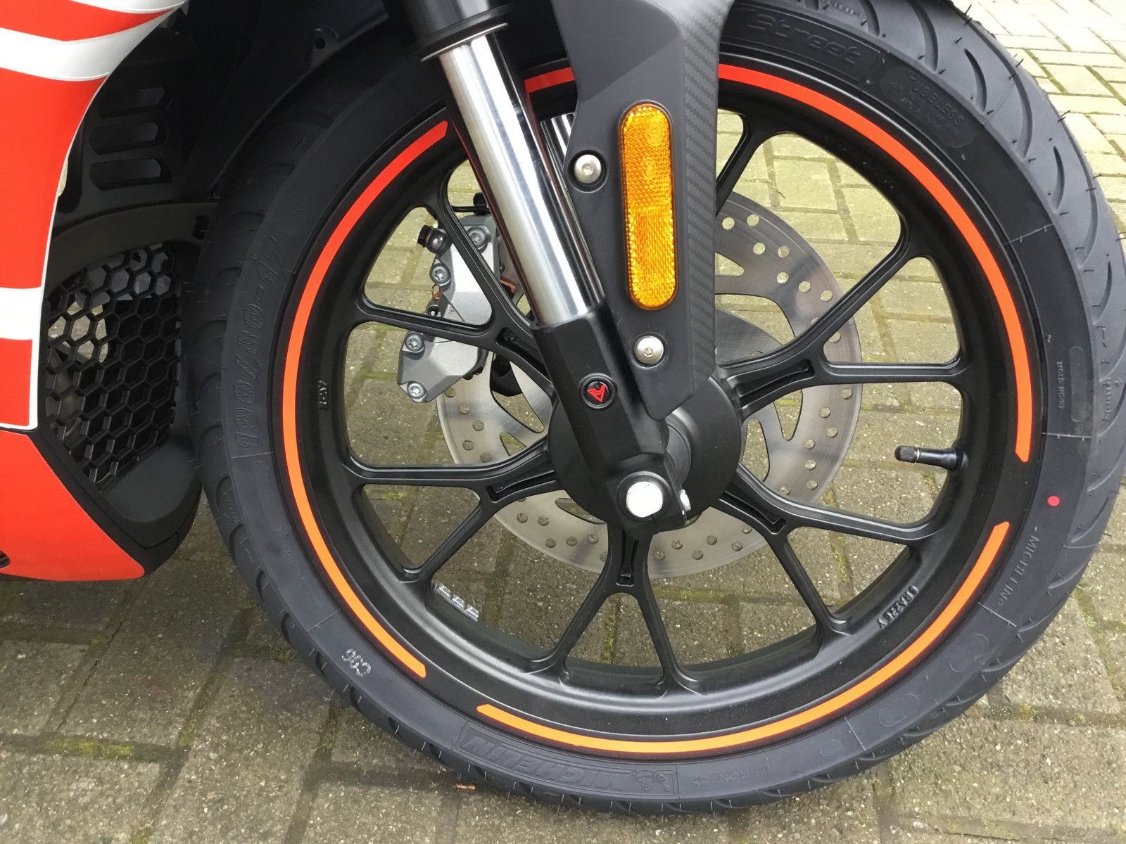 - Maximale Kontrolle und starke Bremsleistung. Das Fahrwerk und das Bremssystem der Aprilia RS 125 sind "Best in Class", mit Lösungen und Performance, die von Motorrädern höherer Hubraumklassen inspiriert sind. Der Aluminiumrahmen besteht aus druckgegossenen Trägern mit verstärkenden Querverstrebungen. An der Vorderachse sorgt eine USD-Gabel in Kombination mit einem radial montierten Bremssattel auf einer 300-mm-Stahlbremsscheibe für kraftvolle und präzise Bremsmanöver. Das Zweikanal-ABS, in Zusammenarbeit mit Bosch entwickelt, ist mit einem Stoppie Control ausgestattet und sorgt für noch mehr Sicherheit bei Notbremsungen.