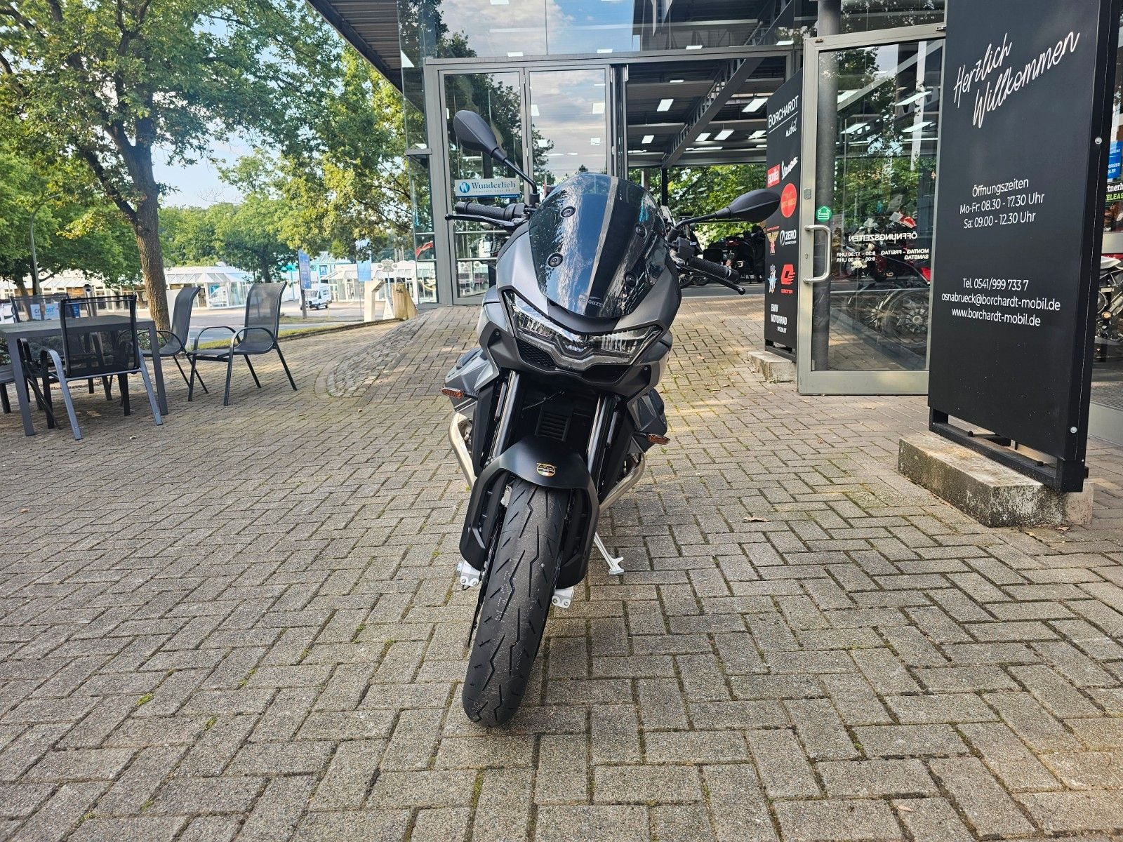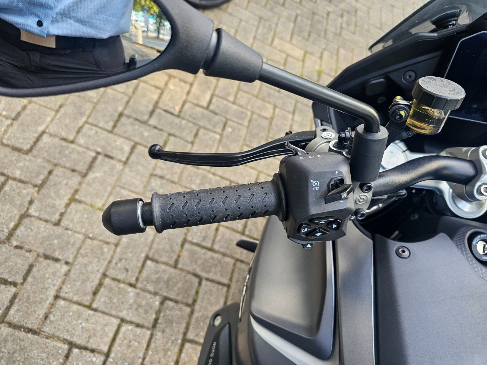 - Komplettes Elektronikpaket Moto Guzzi V100 Mandello bietet ein Elektronikpaket, das Sicherheit und Kontrolle unter allen Bedingungen garantiert. Die sechsachsige Inertiaplattform verwaltet das Kurven-ABS und die Traktionskontrolle und passt die Bremsleistung automatisch an den Schräglagenwinkel an. Über das 5-Zoll-TFT-Farbdisplay an Bord kann zwischen vier verfügbaren und anpassbaren Fahrmodi gewählt werden: TOURING, SPORT, STRADA und RAIN, die Leistung, Traktion und adaptive Aerodynamik je nach Fahrstil und Straßenbedingungen optimieren. Der serienmäßige Tempomat erhöht den Komfort auf langen Strecken zusätzlich.