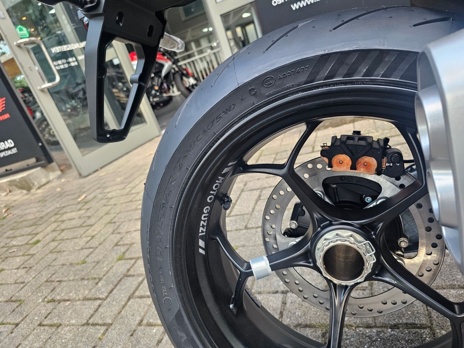 - Full-LED-Lichttechnik Zu den vielen serienmäßigen Details, die alles andere als Standard sind, gehört auch das Full-LED-Lichtpaket. Die Scheinwerfereinheit sorgt mit Kurvenlichtfunktion für mehr Sicherheit und beste Sichtbarkeit. Schön anzusehen spiegelt das LED-Tagfahrlicht unverwechselbar die Silhouette des Moto Guzzi Adlers wider.
