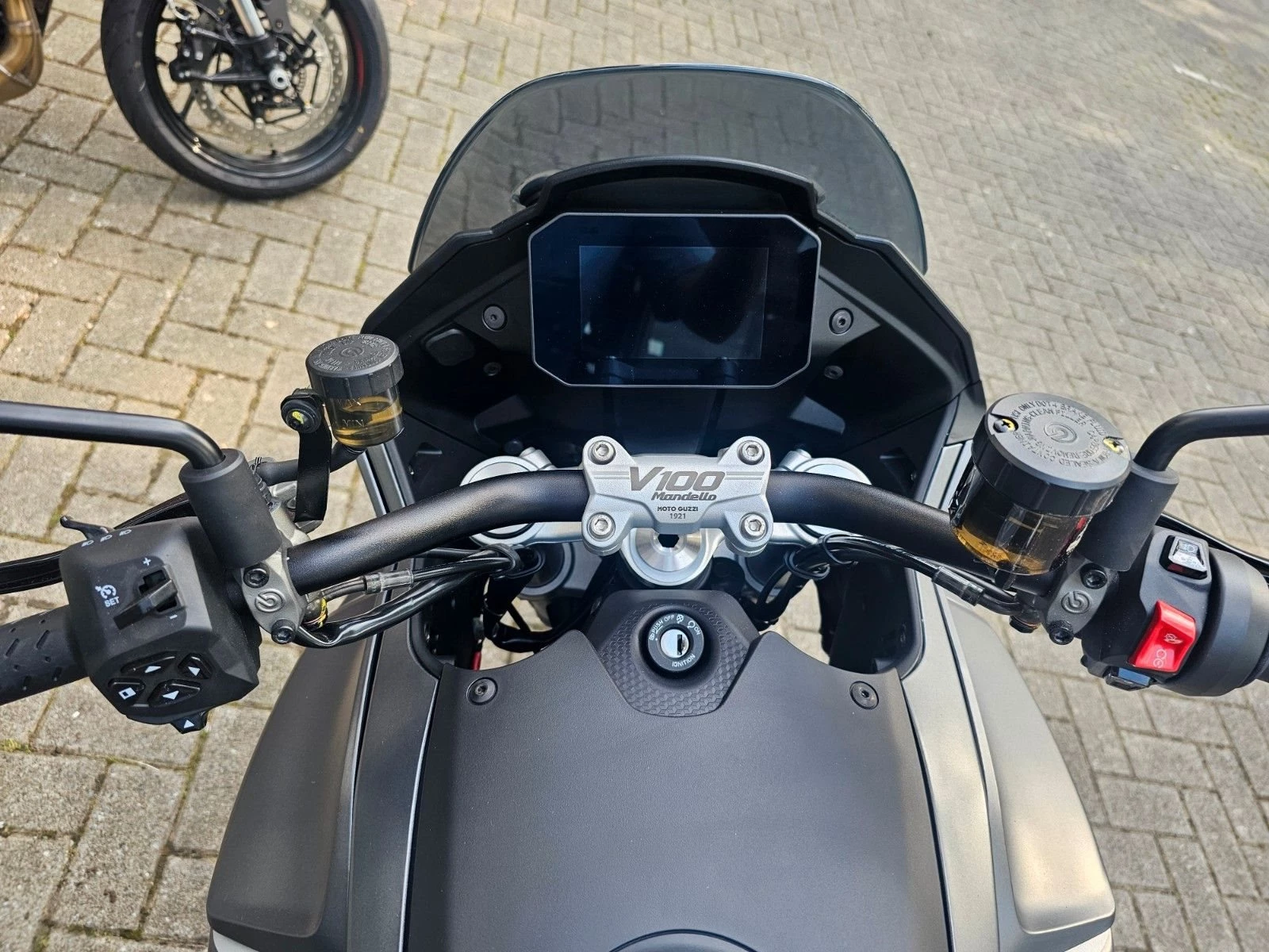 - Fortschrittliche Elektronik Die Moto Guzzi V100 Mandello verkörpert mehr als ein Jahrhundert technologischer Innovation.Dazu zähleb Full-Ride-by-Wire mit vier Riding Modes, die 6-Achsen-Inertiaplattform, das Kurven-ABS, der Tempomat sowie das 5-Zoll-TFT-Farbdisplay. Last but not least: Die Moto Guzzi Multimedia-Plattform, über die Sie Ihr Smartphone mit der Bordelektronik der V100 Mandello koppeln, Telefonie, Entertainment, Navigation und vieles mehr nutzen können.