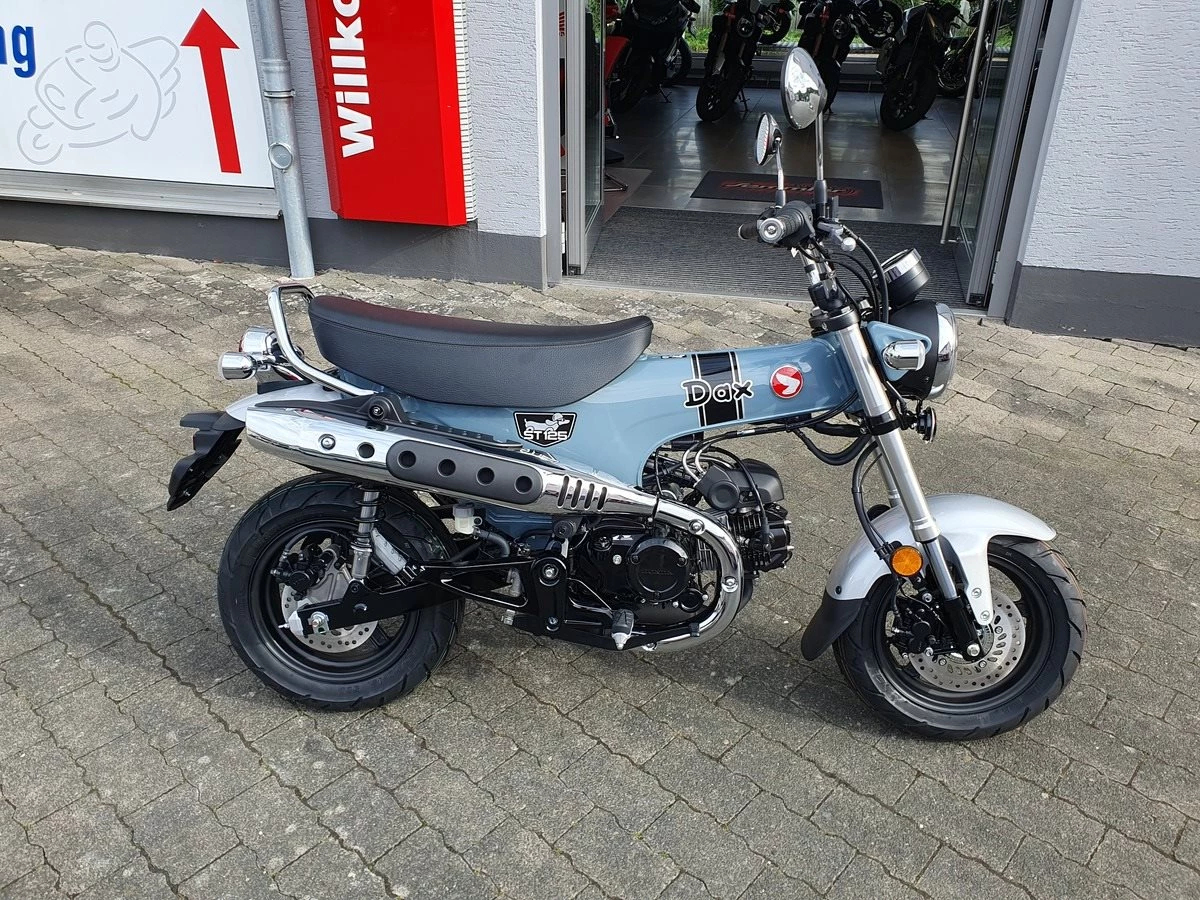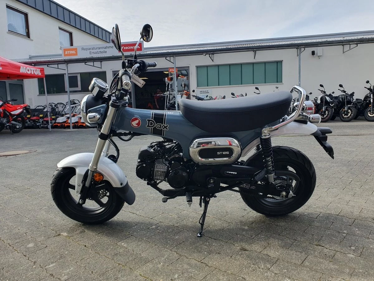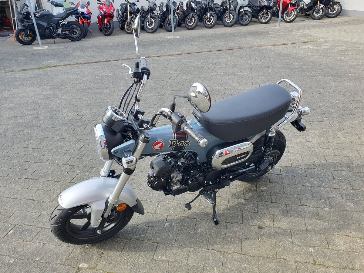 Honda Dax ST125 in pearl cadet gray, Tageszulassung ohne Kilometer. Model 2025 mit EURO5+ SOFORT VERFÜGBAR !!