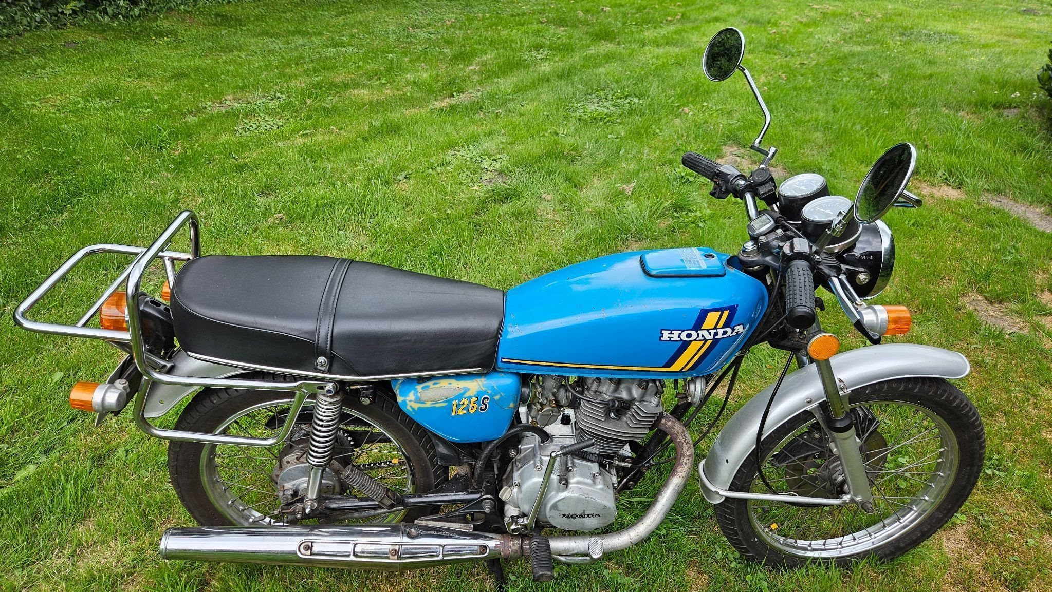 Motorradbegeisterte Frau mit etwas zuviel Maschinen-vier, um genau zu sein, das geht auf Dauer nicht gut. Deshalb darf mein Oldtimer, die Honda CB 125 S, weiterziehen: TÜV 04/27, viel Arbeit investiert: u.a. Kolben + Zyl., Tankversiegelung, Kettensatz, Spiegelverlängerungen, Ersatzschlüssel und vieles mehr. Re Seitendeckel beim Ankicken leicht beschädigt, neuer Seitendeckel mit dabei, dazu div. Ersatzteile. Näheres auf Anfrage , ist alles ehrlich und transparent. 2400 € VB