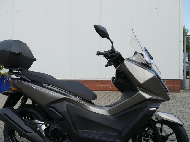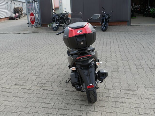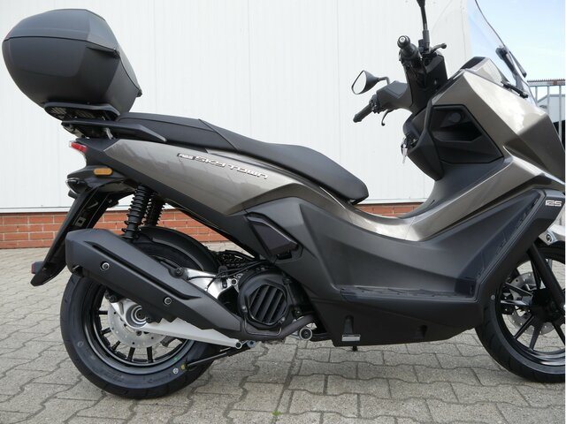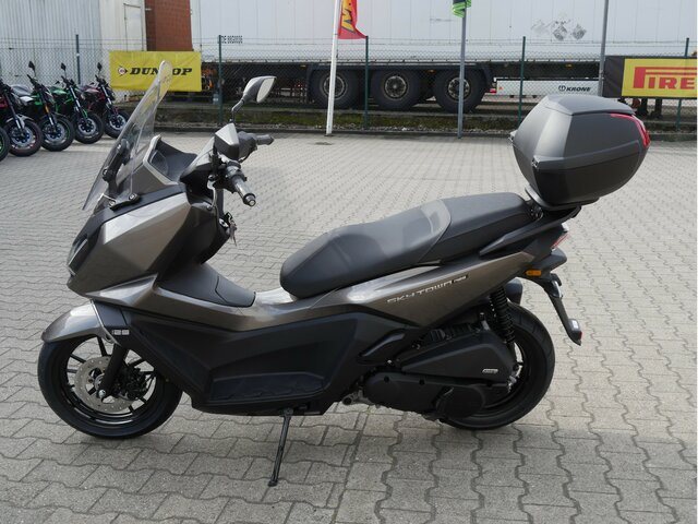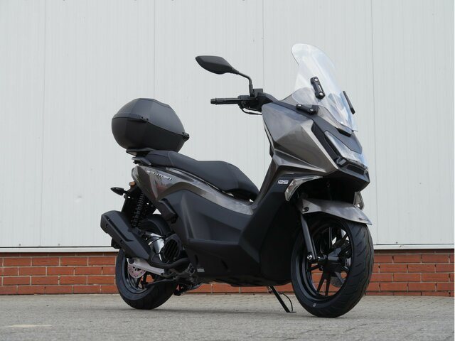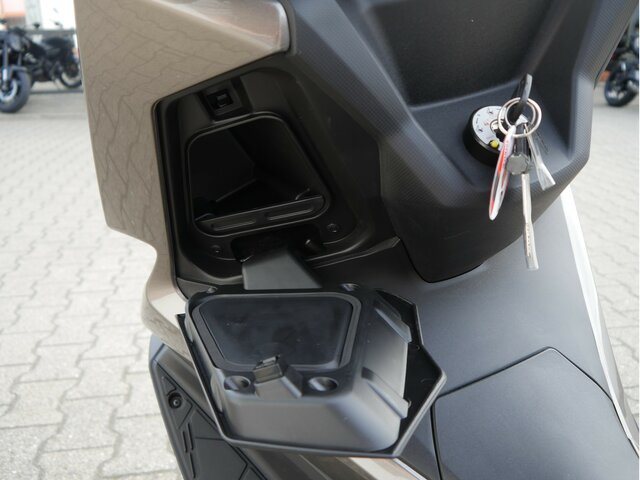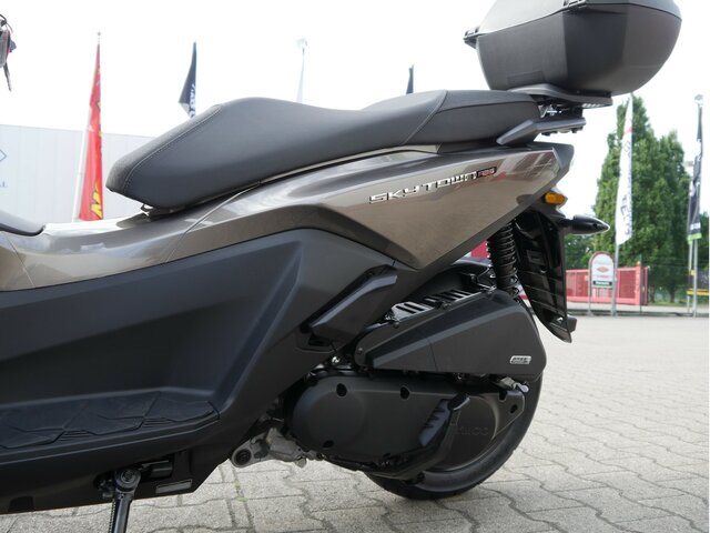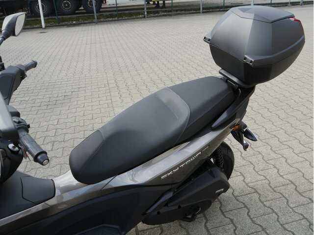Im Alltag punktet der SKY TOWN 125i ABS mit einem praktischen Stauraum unter der Sitzbank, der Platz für einen Integralhelm bietet, sowie mit einem serienmäßigen Topcase zur Erweiterung des Ladevolumens. Ein USB-Anschluss (Typ A & C) ermöglicht das bequeme Laden mobiler Geräte. Das LCD-Dashboard zeigt alle relevanten Fahrdaten übersichtlich an, das Windschild sorgt zudem für verbesserten Komfort bei längeren Strecken.