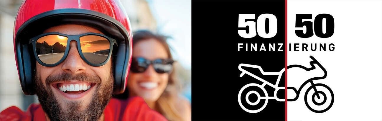 Einfach mit 50% Anzahlung starten. 23 Monate lang ohne Zinsen und Raten die große Freiheit genießen. Danach entweder Motorrad zurückgeben, Restbetrag zahlen oder anschlussfinanzieren.