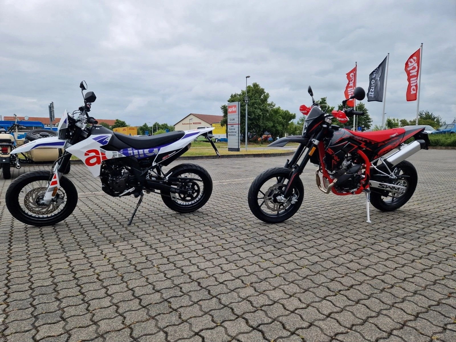 Die SWM SM 125 R ABS E5+ Mod.2025 siehe hinteres Fahrzeug auf den Bildern, ist sofort lieferbar auch in schwarz rot.