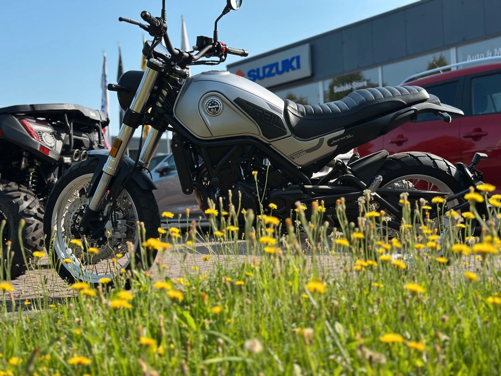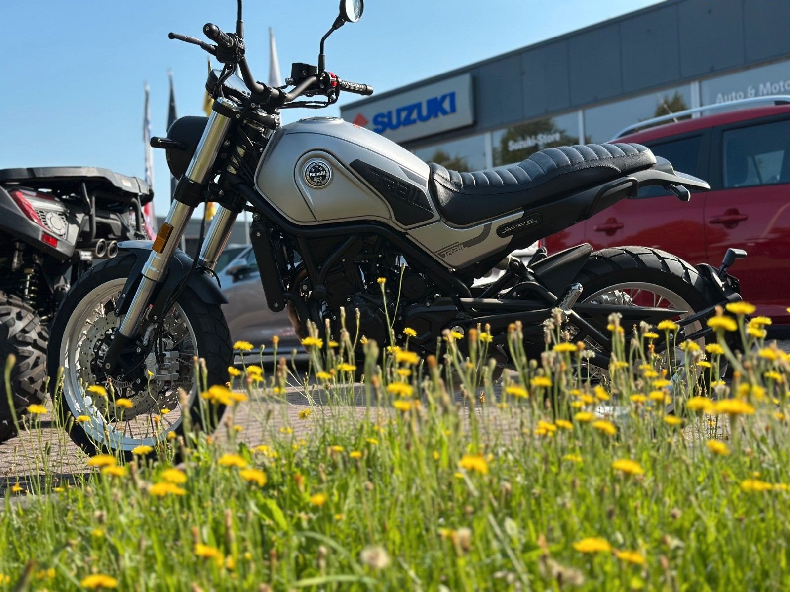 Die Federung besteht aus einem seitlich montierten und einstellbaren Einzelstoßdämpfer hinten und einer robusten Upside-Down-Gabel vorne - 45-mm-Stahlrohre mit 4,9 Zoll Federweg. Die extrem starken Bremsen bestehen aus 4-Kolben-Bremssätteln und 320-mm-Scheiben. Zur Ausstattung gehören außerdem Antiblockiersystem, digitale Instrumente und LED-Scheinwerfertechnologie. Mit nur 170 kg ist der Leoncino deutlich leichter als die Scrambler-Konkurrenz.