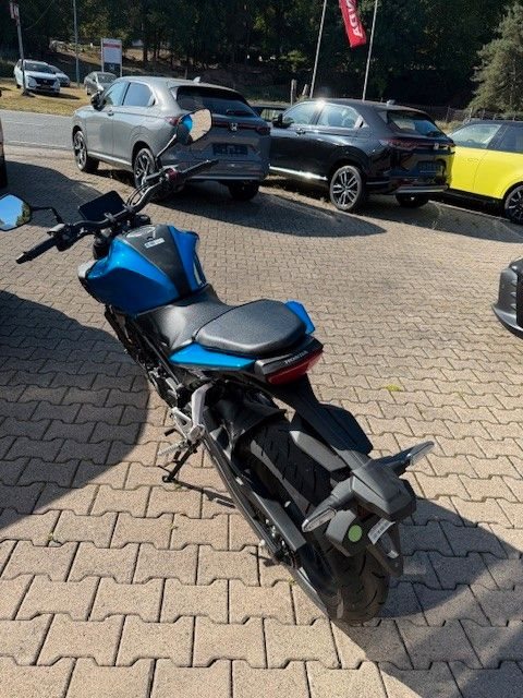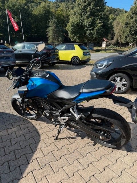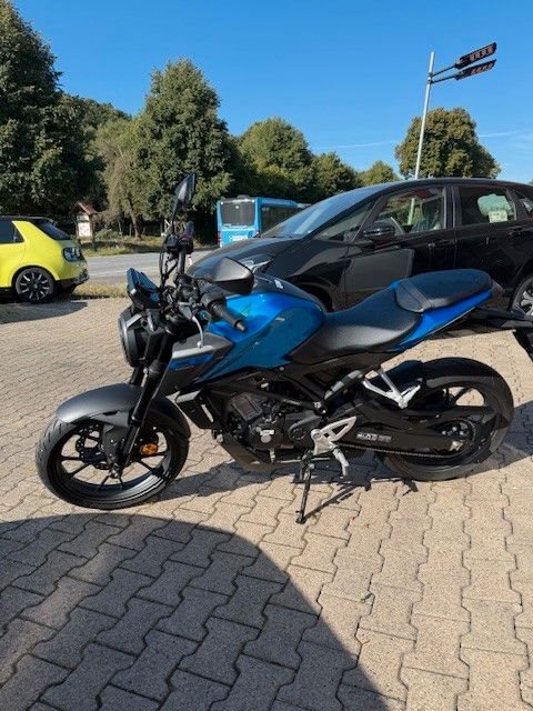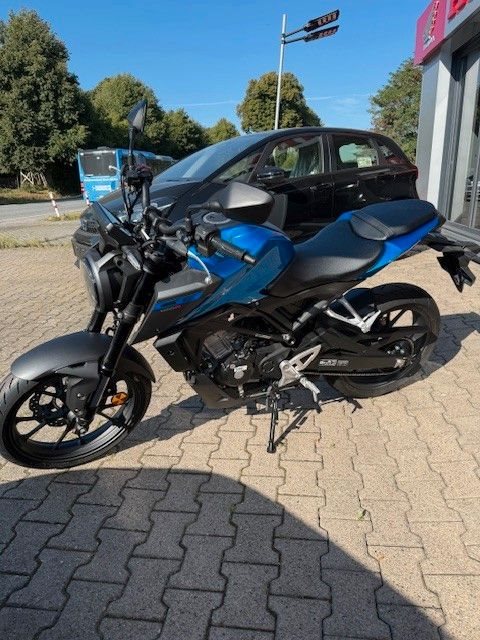 Die CB125R vereint Performance mit Style und bietet Einsteigern ein großartiges Fahr- erlebnis. Als kleine Schwester der CB1000R - und somit Mitglied der "Neo Sports Café"- Familie - ist ihr markantes Design ein echtes Statement: Minimalismus als Philosophie. Das Vertrauen in die CB125R wächst mit jeder Fahrt. Dank kompakter Abmessungen ist die CB125R leicht zu handeln, zusätzliche Big-Bike-Features machen den Einstieg in die Welt des Motorradfahrens perfekt.Der DOHC-Vierventil-Einzylindermotor erfreut seinen Fahrer mit spritzigen 11 kW (15 PS) und einem maximalen Drehmoment von 12 Nm; die Kraftübertragung erfolgt über ein sportlich abgestimmtes Sechsgang-Getriebe. Passend zum Hochleistungsmotor kommt die CB125R mit einer 41-mm-USD-Gabel vom Typ SHOWA SFF-BP - eine Gabel der Spitzenklasse. Ein Druckstufendämpfer in einem Gabelrohr und ein Federungssystem im anderen sorgen für hervorragende Dämpfungsleistung und reduzieren das Gewicht. Der Einsatz eines größeren Kolbens verbessert zudem das Fahrgefühl, die Dämpfung und die Kontrolle. Serienmäßige Fullsize-Reifen, ein radial montierter Bremssattel am Vorderrad sowie ABS-Management mit Inertial Measurement Unit (IMU) komplettieren das Angebot.Eine Neo Sports Café fällt auf. Vor allem der markante runde Scheinwerfer mit schlanker Ein- fassung inklusive Tagfahrlicht, das die Sichtbarkeit für andere Verkehrsteilnehmer erhöht. Die Blinker leuchten ebenfalls in LED.