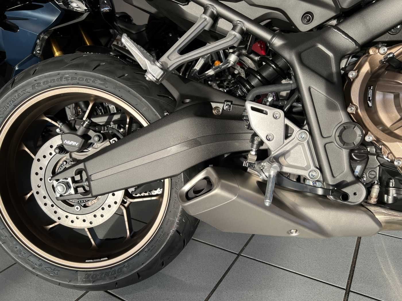 - Showa SFF-BP-Upside-Down-Gabel (41 mm) am Vorderrad sorgt für präzise Kontrolle und ein feines Gefühl für den Grip.