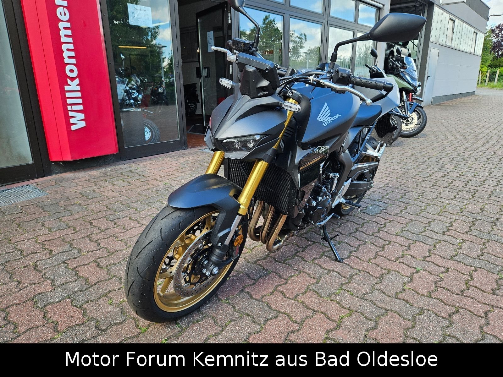 Die Hornet-Familie ist jetzt vollständig und unser Topmodell sticht heraus. Die neue CB1000 Hornet mit ihrem Vierzylindermotor ist ein erstklassiges Naked Bike, das den Asphalt zum Glühen bringt. Throttle By Wire sorgt für präzise Kontrolle, während das Fahrwerk mit der einstellbaren SHOWA 41mm SFF-BP Upside-Down-Gabel und dem Pro-Link-Federbein ausgestattet ist. Die unverfälschte, aggressive Streetfighter-Attitüde wird durch einen markanten LED-Doppelscheinwerfer unterstrichen. Das 5-Zoll TFT-Farbdisplay und die Honda RoadSync-Konnektivität sorgen für die nötigen Informationen. Kann es losgehen?