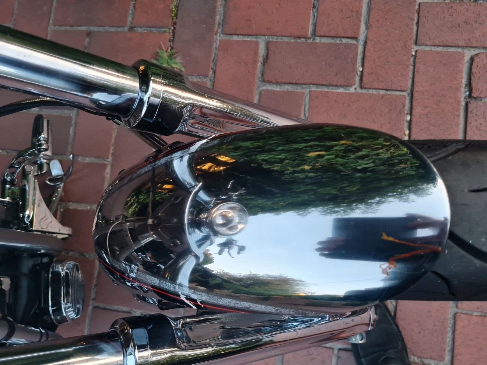 - Der breiteste Hinterreifen der serienmäßigen Harleys kommt gut zur Geltung