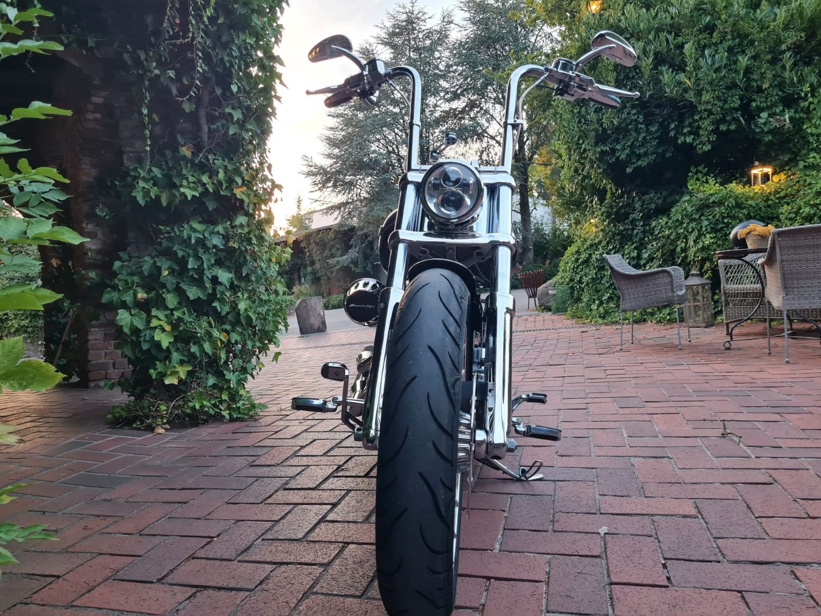 - Der breiteste Hinterreifen der serienmäßigen Harleys kommt gut zur Geltung
