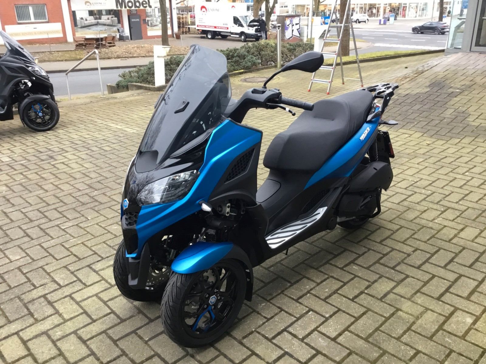 - Sportlicher AuftrittDas moderne, sportliche Design des MP3 310, das sich harmonisch mit der markanten Frontpartie verbindet, schafft eine schlanke, leichte Silhouette. Die einzigartige Front mit ihren zwei Vorderrädern wird durch sportive Radabdeckungen in Fahrzeugfarbe abgerundet. LED-Tagfahrlicht und ein großes LCD-Display unterstreichen den technischen Anspruch und den sportlichen Charakter. Sein Kombibremssystem mit 3-Kanal-ABS und die Traktionskontrolle sorgen auf rutschigem und unebenem Untergrund für ein Plus an Sicherheit. Agil und handlich garantiert der MP3 310 Fahrspaß vom Feinsten.