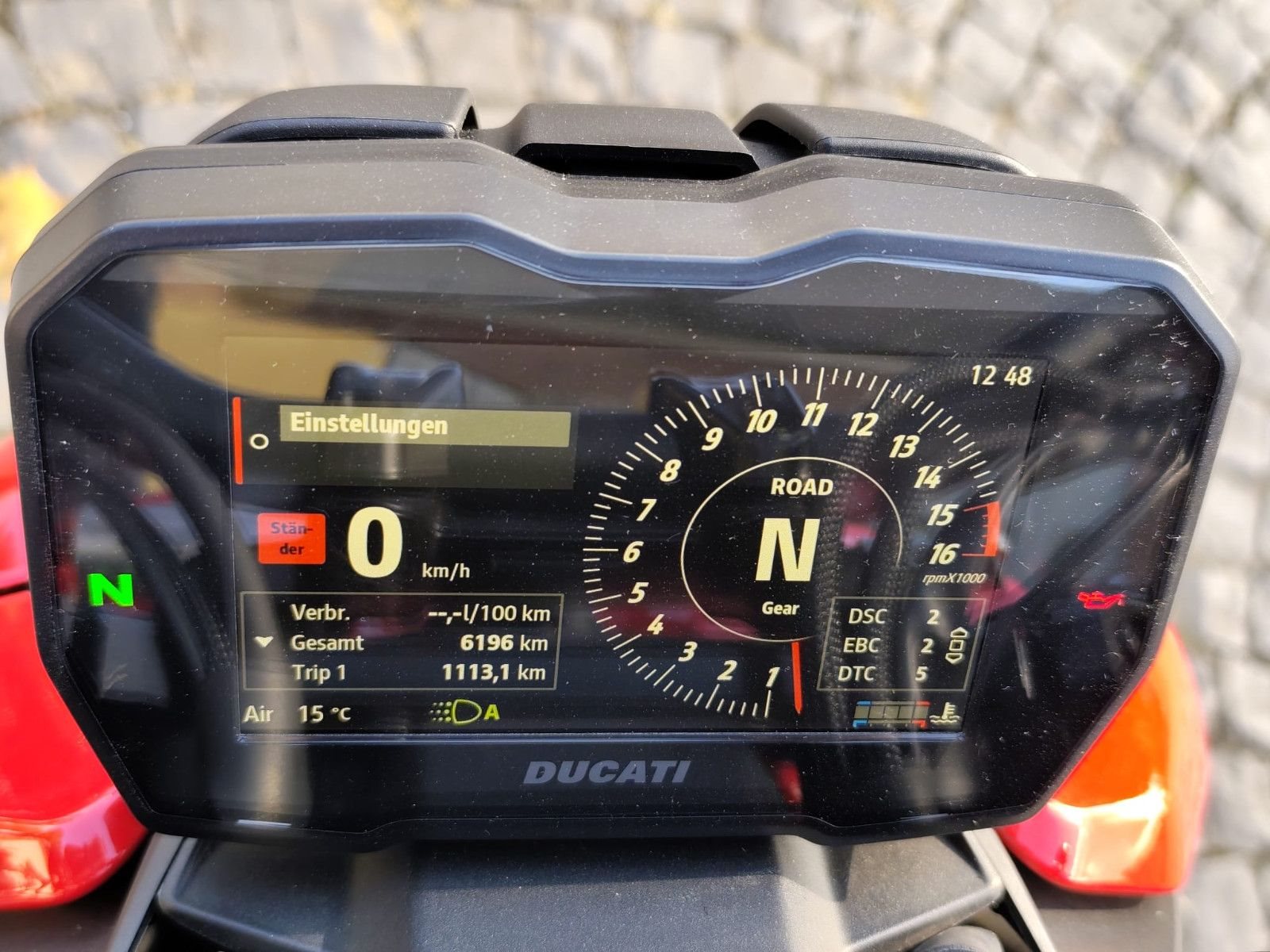 - Modernste Assistenzsysteme: Ducati Traction Control, Wheelie Control, Slide Control, Kurven-ABS
