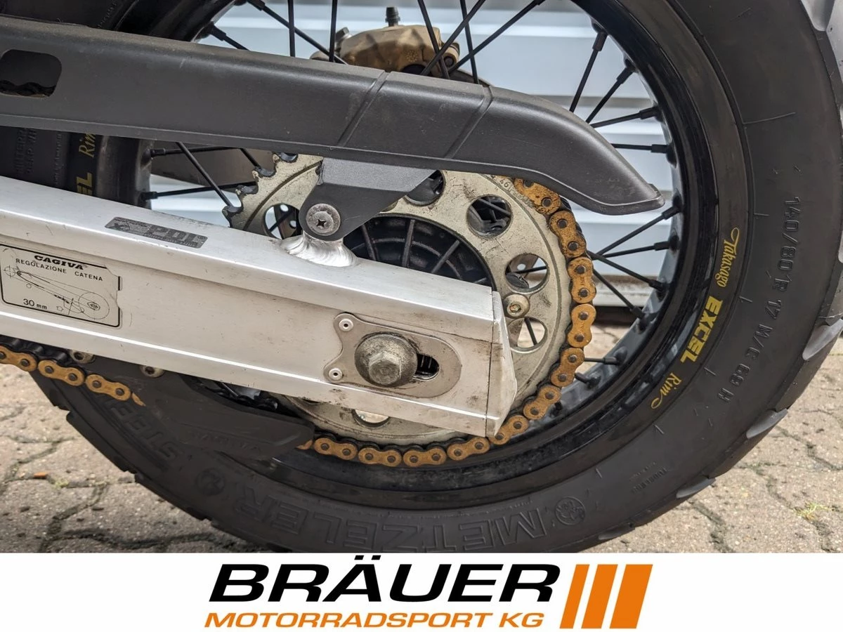 Luftgekühlter Ducati Motor, sehr gepflegter Zustand, Wilbers Federbein (höhenverstellbar) und Gabelfedern mit ABE, neue Metzeler Tourance Reifen, getönte MRA Scheibe mit ABE, Puig Spoiler am Windschild, Stahlflex Bremsleitung mit ABE, Acerbis Rallyhandguards, EXCEL Felgen schwarz eloxiert, schwarze Speichen und Speichennippel