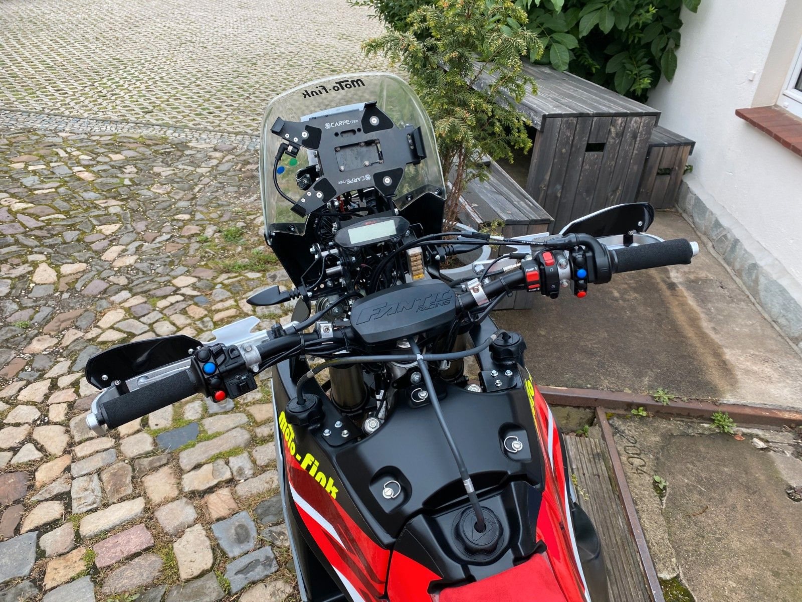 Alles unter Kontrolle. Dank unseres 7-Zoll-RallyScreens kannst du ganz einfach GPX-Tracks und digitale Roadbooks einsehen und alle auf dem Markt erhältlichen Navigations-Apps nutzen: sowohl über den Touchscreen als auch über die beiden Controller am Lenker. Basierend aus Android kannst du alle gewünschten Apps wie auf deinem Smartphone verwalten, plus absolutem Schutz gegen Stöße, Staub und Wasser (IP67 zertifiziert). Der RallyScreen schaltet sich zusammen mit dem Motorrad ein und aus, verfügt jedoch über eine interne Batterie, damit du ihn mitnehmen und dein nächstes Abenteuer und die Strecke bequem von deinem Sofa aus planen kannst.