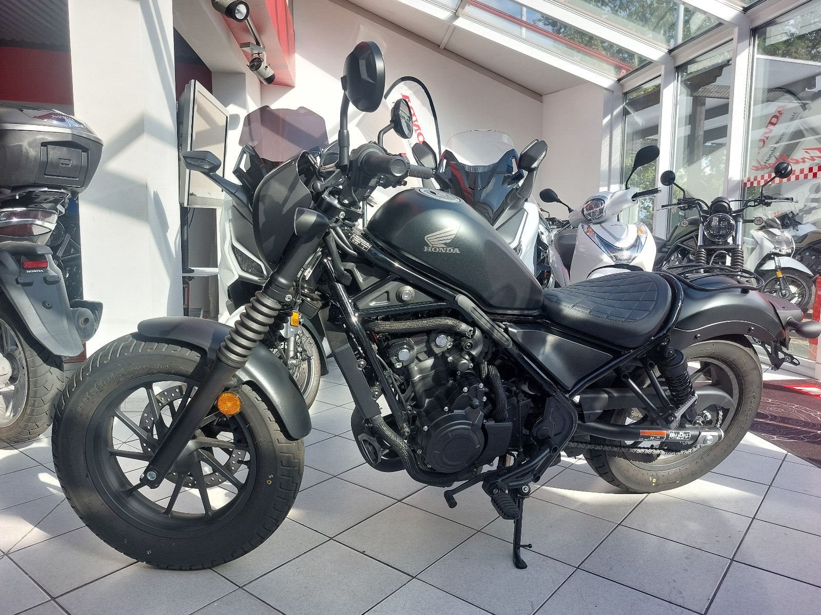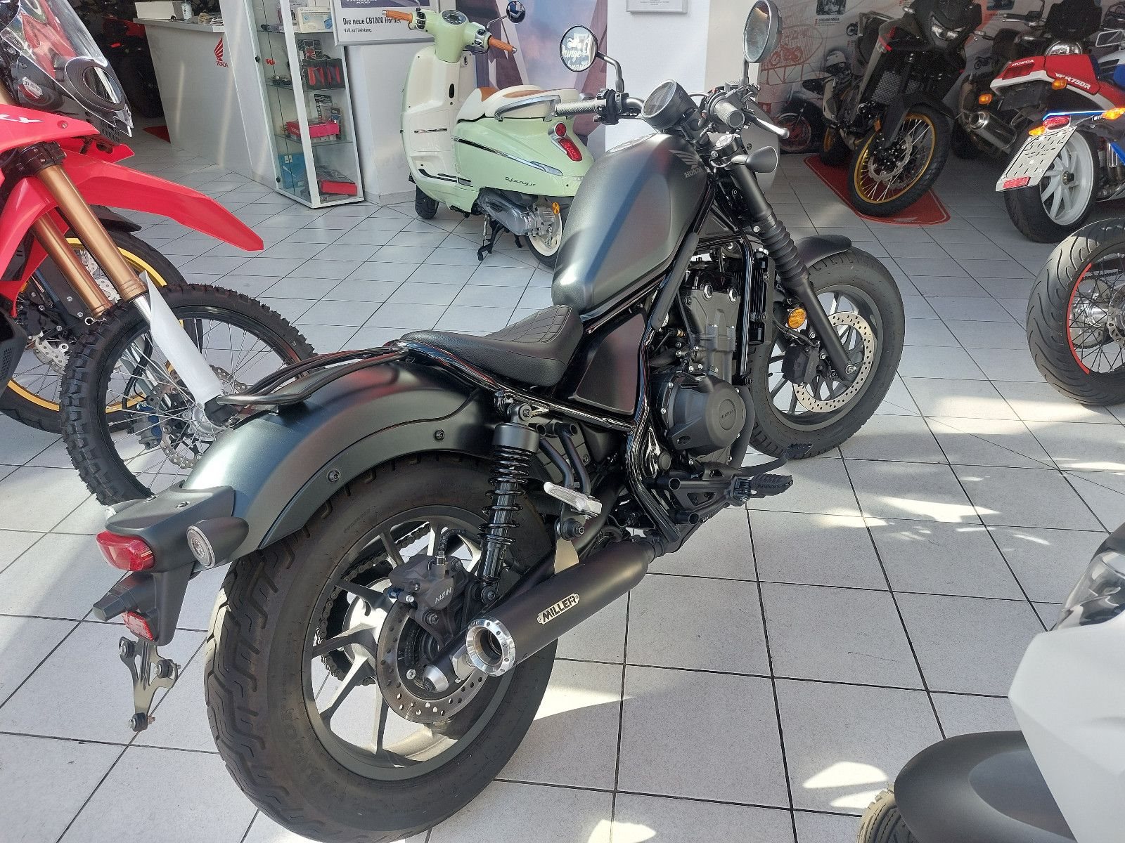 Honda CMX500 Special Edition, Gebrauchtfahrzeug Modell 2024, sofort lieferbar, Euro 5, Verbrauch nach WMTC 3,6l/100km, CO2 Ausstoss 84g/km, Special Edition Ausstattung mit Lampenmaske, Faltenbälgen und schwarzen Gabelhülsen, Fahrersitz mit Steppmuster, Gepäckträger statt Soziussitz (Soziussitz vorhanden), Miller Auspuff.