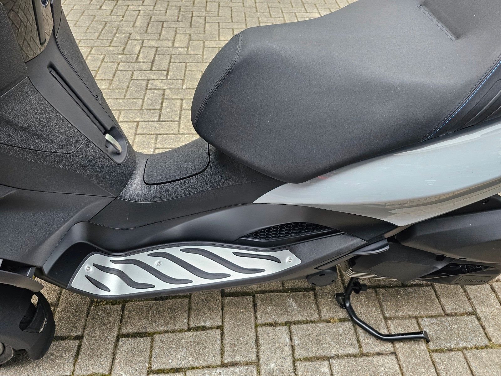 - Sportlicher AuftrittDas moderne, sportliche Design des MP3 310, das sich harmonisch mit der markanten Frontpartie verbindet, schafft eine schlanke, leichte Silhouette. Die einzigartige Front mit ihren zwei Vorderrädern wird durch sportive Radabdeckungen in Fahrzeugfarbe abgerundet. LED-Tagfahrlicht und ein großes LCD-Display unterstreichen den technischen Anspruch und den sportlichen Charakter. Sein Kombibremssystem mit 3-Kanal-ABS und die Traktionskontrolle sorgen auf rutschigem und unebenem Untergrund für ein Plus an Sicherheit. Agil und handlich garantiert der MP3 310 Fahrspaß vom Feinsten.