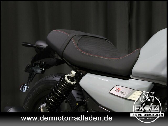 Die Moto Guzzi V7 Sport zeichnet sich unter anderem durch doppelte Scheibenbremsen an der Vorderachse, eine Upside-Down-Gabel sowie durch die IMU mit Kurven-ABS und einen individuell gestaltbaren Sport-Fahrmodus aus.