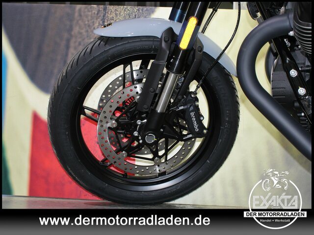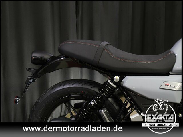 Die Moto Guzzi V7 Sport zeichnet sich unter anderem durch doppelte Scheibenbremsen an der Vorderachse, eine Upside-Down-Gabel sowie durch die IMU mit Kurven-ABS und einen individuell gestaltbaren Sport-Fahrmodus aus.