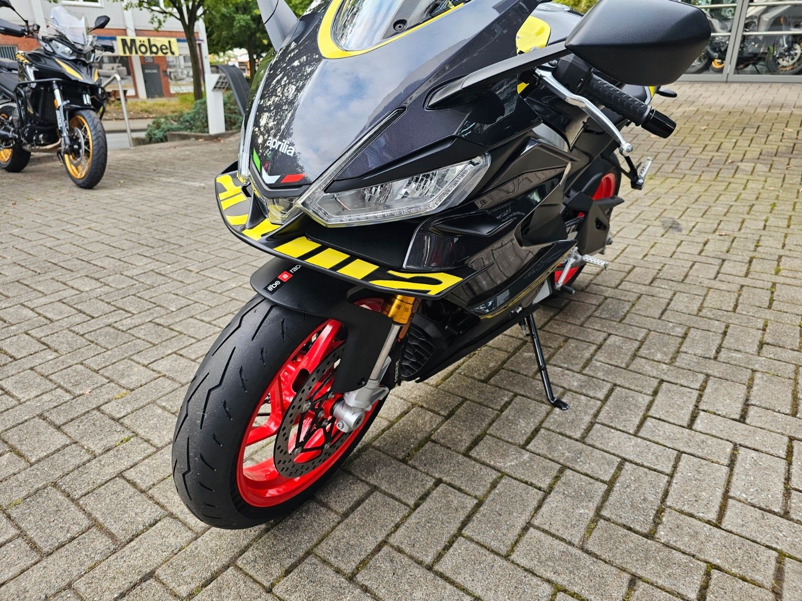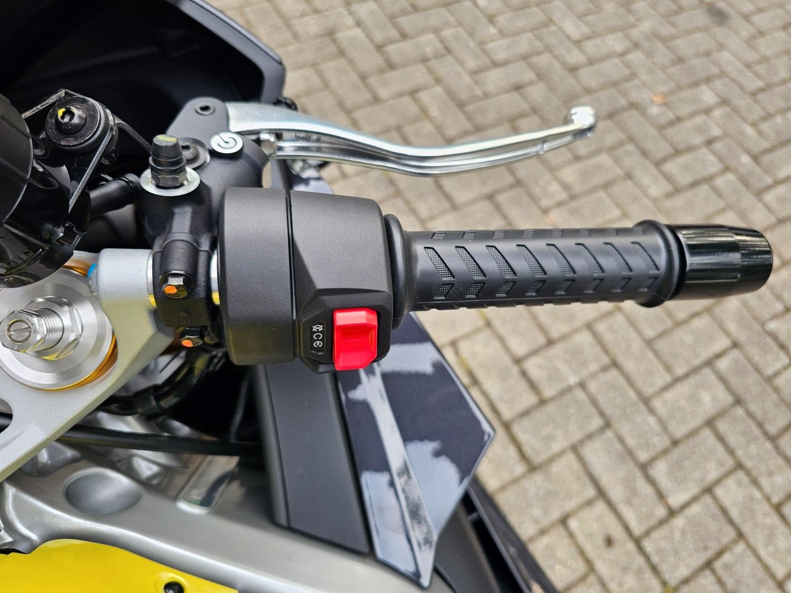 - Vollständiges APRC-Paket. Es ist das Fahrverhalten, das die Aprilia RS 660 wirklich auszeichnet. Der Zweizylindermotor mit vier Ventilen pro Zylinder, Euro 5+ homologiert, bietet 95 PS Maximalleistung ( Bei 48PS Variante)und eine satte Leistungsentfaltung. Der Motor, der auch als tragendes Element dient, arbeitet in perfekter Synergie mit dem Aluminiumrahmen und bildet eine kompakte, leichte und steife Struktur. Die 660 steht für totale Kontrolle und Stabilität in jeder Kurve, auch wenn das Adrenalin auf dem Höhepunkt ist.