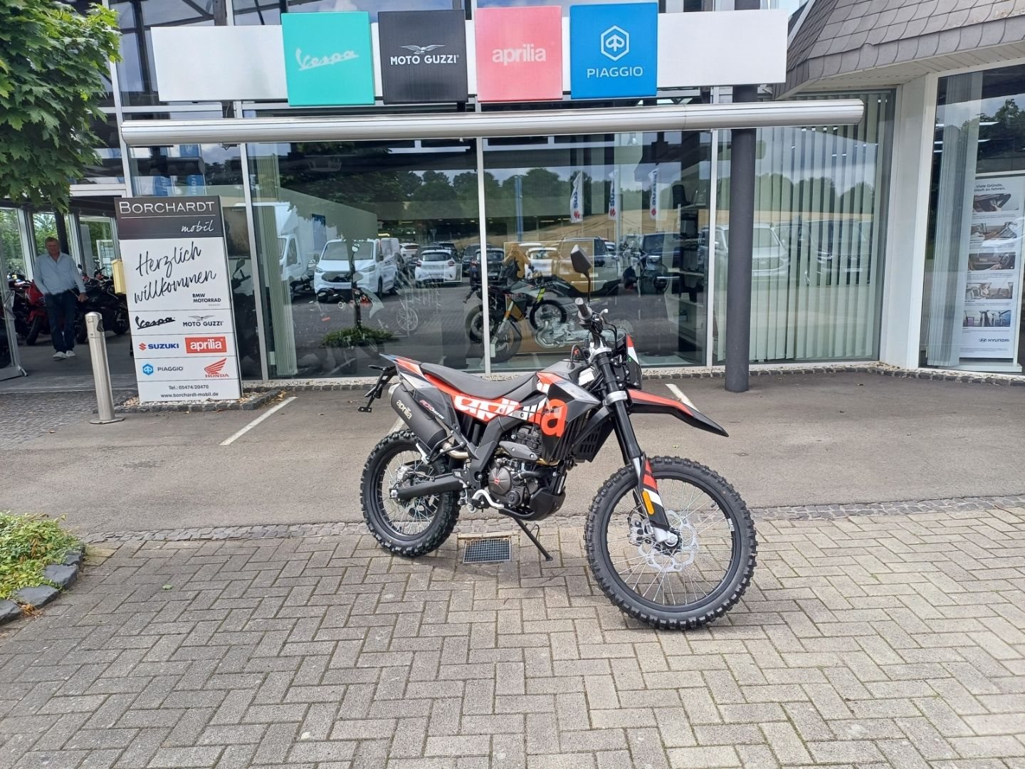 Die Aprilia RX 125 treibt dich zu Abenteuern an, sie ist wendig auf der Straße und unaufhaltsam im Gelände. Sie ist in der Offroad-Tradition von Aprilia verwurzelt und hat die triumphalen Siege des Aprilia Tuareg Rally in seiner DNA. Dank raffinierter technischer Lösungen und eines modernen, Euro 5+ konformen Motors ist die RX 125 bereit, sich jeder täglichen Herausforderung zu stellen.