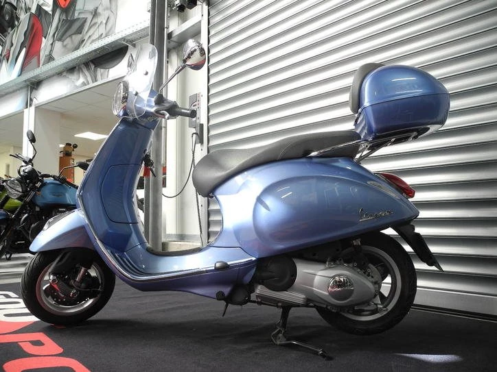 Gebrauchtfahrzeug Vespa Primavera 125 in blau vom Vespa Vertragshändler mit PRIME Status * TOP-ZUSTAND aus 1. Hand mit Original Vespa Topcase mit Rückenpolster und kleinem Windschild, Kundendienst und TÜV kostenlos neu bei Verkauf